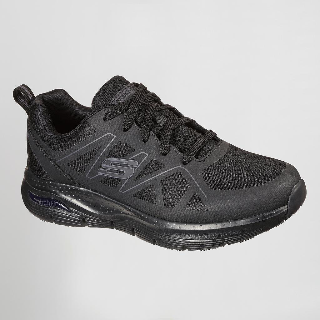 Soporte y comodiad durante largas horas. Skechers Work: Arch Fit® SR – La zapatilla de trabajo con cordones Axtell ofrece resistencia al deslizamiento y un sistema de plantilla de amortiguación Arch Fit® patentado y extraíble.• Calzado de trabajo.• Zapatilla de deporte con cordones.• Parte superior de tejido de malla duradera.• Cuello y lengüeta acolchados.• Logotipo S lateral.• Suela antideslizante nivel «SR» testada en baldosa y acero.• Resistente a hidrocarburos.•El diseño de seguridad ESD disipa la electricidad estática para su uso en lugares de trabajo sensibles a la electricidad.• Plantilla diseñada en colaboración con podólogos.• La plantilla fue desarrollada con más de 20 años de datos y 120.000 escaneos de pies.• Plantilla diseñada para amoldarse a su pie, reducir el impacto y aumentar la dispersión del peso.• Lavado a mano.STANDARD: EN ISO 20347:2012CATEGORY: OB A FO SR + ESDTALLAS: 40-41-42-43-44-45-46-47,5
