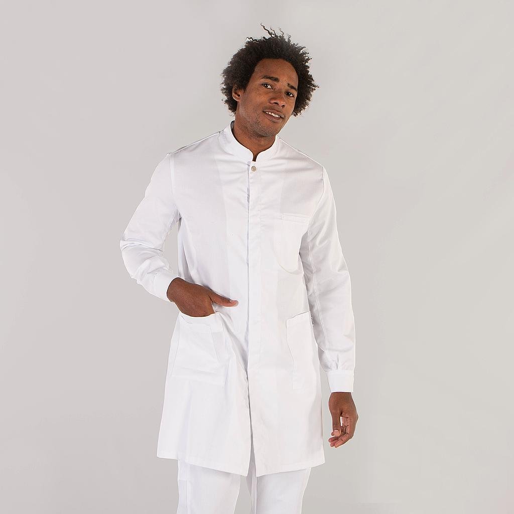 Descubre la distinción en la Bata Hombre Artur, una prenda diseñada para profesionales de la salud que buscan calidad y estilo en su vestuario laboral. Esta bata de manga larga presenta un elegante cuello mao, cierre mediante botones de presión ocultos, un bolsillo en el pecho izquierdo, dos bolsillos delanteros (uno de ellos doble) y puños con corchetes vistos. La prenda, holgada y con fuelle en la espalda, proporciona comodidad y amplitud de movimiento.Confeccionada en sarga con detalles de COOLMAX en la zona de las sisas y el canesú de la espalda, esta bata destaca por su resistencia y transpirabilidad. Ideal como uniforme para médicos, enfermeros y profesionales sanitarios. Completa tu conjunto con el modelo a conjunto para mujer (ref. 659900). Eleva tu desempeño y estilo con Artur.