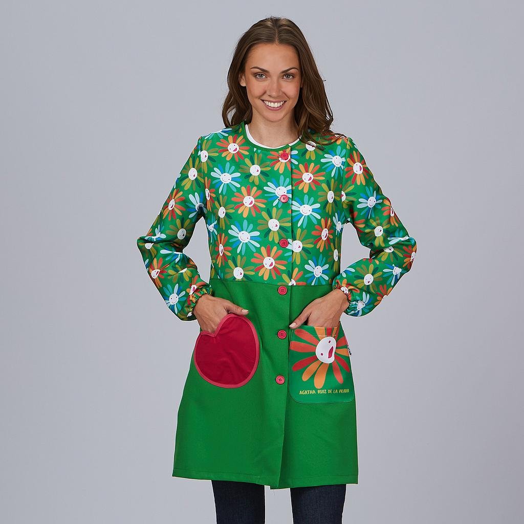 Esta bata está estampada con un diseño original y divertido de Agatha Ruiz de la Prada, una de las diseñadoras más renombradas y creativas de la moda contemporánea. El toque único y creativo de esta reconocida marca se traduce en un estilo inigualable que te permitirá destacar con distinción en tu entorno laboral.