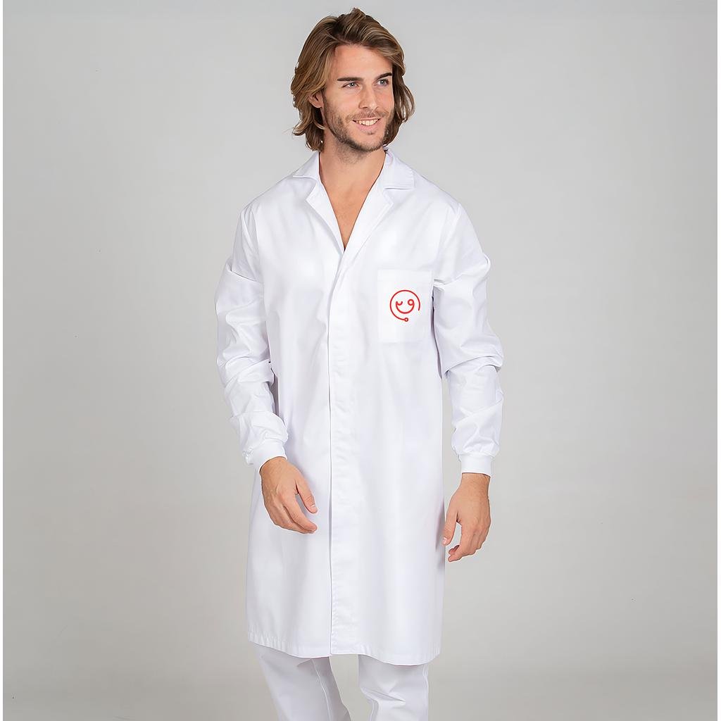 Puños acrílicos. Bolsillo pecho interior. Cuello solapa. Botones de presión ocultos. 105 cm | H3 HOLGADA.