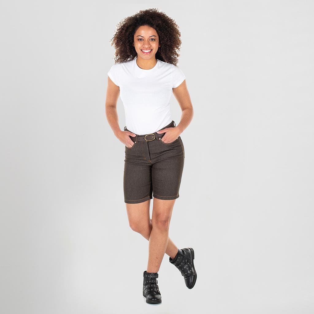 Equilibrio perfecto entre estilo y comodidad con nuestra Bermuda de Mujer Vaquero Talle Medio, diseñada para profesionales de la hostelería y la industria alimentaria. Este pantalón corto, confeccionado en vaquero elástico, ofrece un ajuste cómodo y una estética moderna que resalta la elegancia en el entorno laboral.El talle medio añade un toque de sofisticación, mientras que la cinturilla y el cierre mediante botón y cremallera garantizan un ajuste seguro. Con dos bolsillos tejanos delanteros, dos bolsillos de parche traseros y un bolsillo relojero izquierdo, esta prenda no solo es funcional sino también práctica.Ideal para camareras, cocineras y profesionales del comercio, la Bermuda de Mujer Vaquero Talle Medio es la elección perfecta para uniformes en bares, restaurantes, cafeterías y comercios en general. Eleva la imagen de tu equipo con esta prenda que fusiona moda y funcionalidad, proporcionando confort y estilo durante cada jornada laboral.