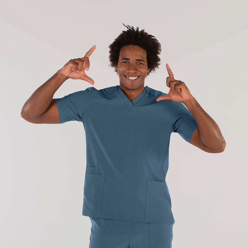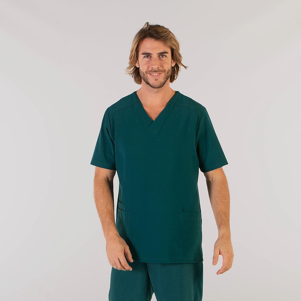 Descubre la versatilidad y comodidad de la Casaca Hombre Tadeo, una prenda diseñada para satisfacer las demandas de profesionales de la salud y otros sectores laborales. Esta casaca de manga corta presenta un moderno cuello pico y tres bolsillos delanteros, incluyendo dos en el lateral derecho, ofreciendo funcionalidad y estilo. La prenda, holgada y cómoda, cuenta con costadillos en delantero y trasero, así como aberturas laterales para mayor libertad de movimiento.Confeccionada en una amplia gama de colores de MICROFIBRA 360 95% PES 5% EA – 170 gr/m², un tejido revolucionario con tratamiento antibacteriano Silvadur, que incorpora iones de plata para proporcionar protección y frescura. Este tejido absorbe y mantiene alejado el sudor de la piel, facilitando la transpiración, y su propiedad elástica 360 permite estirarse en todos los sentidos, brindando una mayor comodidad y libertad de movimiento.Colores disponibles:Negro (C/001) | Blanco (C/101) | Azulina (C/103) | Marino (C/104) | Rosa (C/106) | Celeste (C/107) | Verde (C/108) | Gris perla (C/117) | Lila (C/123) | Albero (C/128) | Coral (C/133) | Morado (C/136) | Arena (C/142) | Verde petróleo (C/145) | Verde caqui (C/149) | Azul grisáceo (C/152) | Verde agua (C/155) | Nude (C/157)Pantalón a juego: 700083.Versión mujer: 659600.