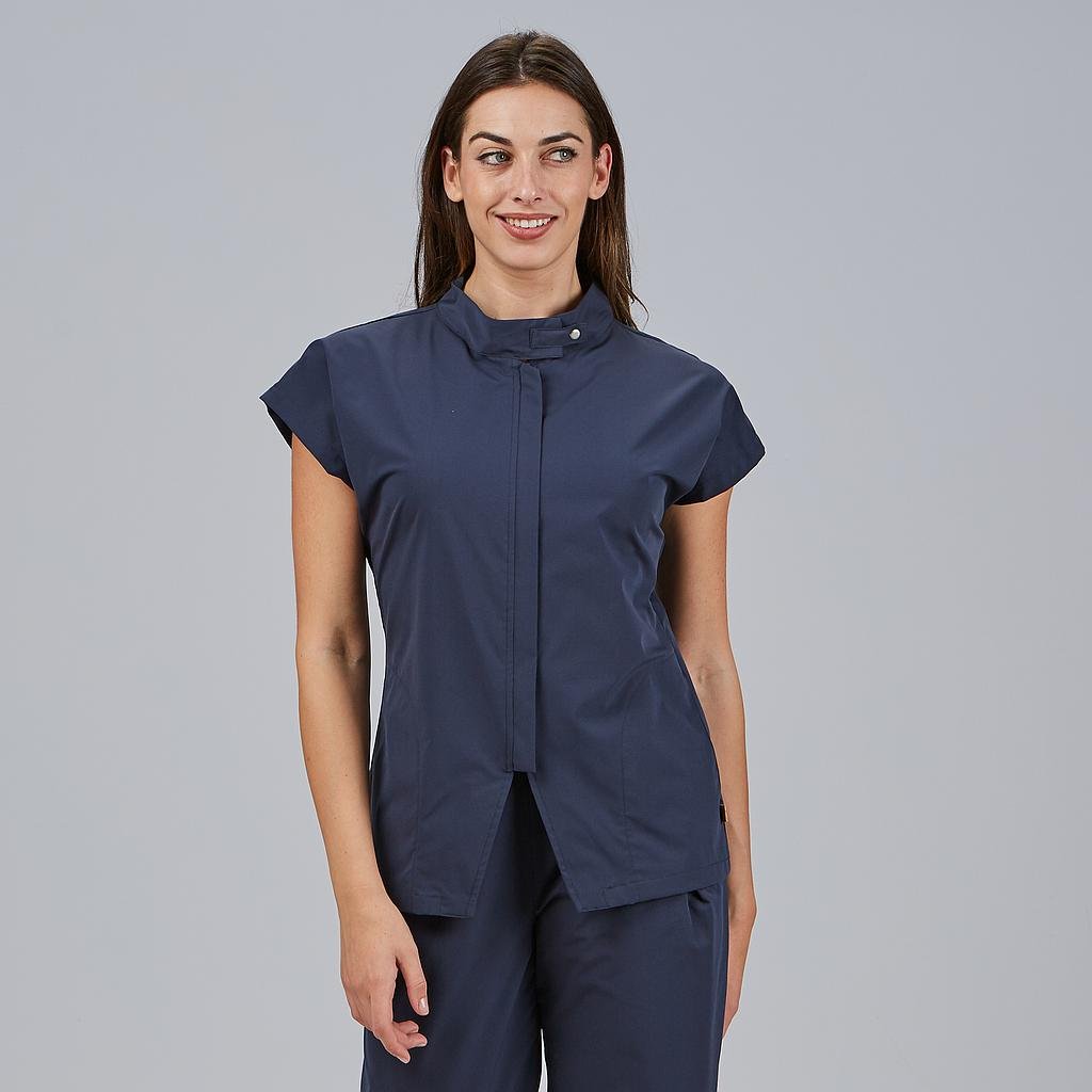 La blusa MUSA de Uniformes Gary’s es una prenda profesional diseñada para mujeres que buscan ligereza, elegancia y sostenibilidad en su uniforme de trabajo diario. Con un diseño moderno y estructurado, es ideal para entornos como clínicas, centros de estética, spa, farmacia o wellness.Confeccionada en tejido SOREMA 53% PES RECYCLED 47% BIO PES – 108 gr/m², de tan solo 108 g/m², esta blusa es especialmente ligera, fresca y respetuosa con el medioambiente.Su cuello chimenea con doble cierre (botón exterior a la vista e interior oculto) aporta un toque contemporáneo, mientras que su cremallera central frontal facilita el uso. El patrón semi ajustado M2 se adapta con comodidad y elegancia a la silueta femenina, y las pinzas traseras refuerzan el entalle sin limitar la movilidad.Incluye dos bolsillos laterales funcionales, perfectos para llevar útiles de trabajo o accesorios personales, y tiene una longitud aproximada de 65 cm.Colores disponibles:Negro (C/001) | Blanco (C/101) | Marino (C/104) | Arena (C/142) | Verde Caqui (C/149)Pantalón a juego: 700077