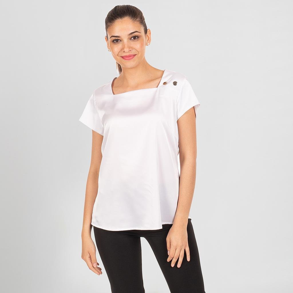 La BLUSA MUJER SATÉN CAROLA redefine la elegancia en el vestuario laboral para la hostelería y restauración. Confeccionada en SATÉN de 94% Poliéster – 6% Elastano, esta blusa de manga corta presenta un escote cuadrado que combina estilo y profesionalismo. Dos botones decorativos en la parte izquierda del cuello añaden un toque distintivo.Las pinzas estratégicamente ubicadas en costados y espalda ofrecen un ajuste favorecedor y cómodo, asegurando comodidad durante todo el día. Ideal para profesionales de bares, restaurantes, cafeterías y otros negocios de hostelería, así como para recepción, oficinas y comercios en general, la BLUSA MUJER SATÉN CAROLA se adapta a diferentes entornos laborales.Esta blusa no solo destaca por su diseño moderno, sino también por su versatilidad, siendo una opción perfecta como uniforme en diversos sectores. Eleva la imagen de tu equipo con esta prenda que fusiona moda y funcionalidad, asegurando un impacto positivo en la presencia de tu personal.