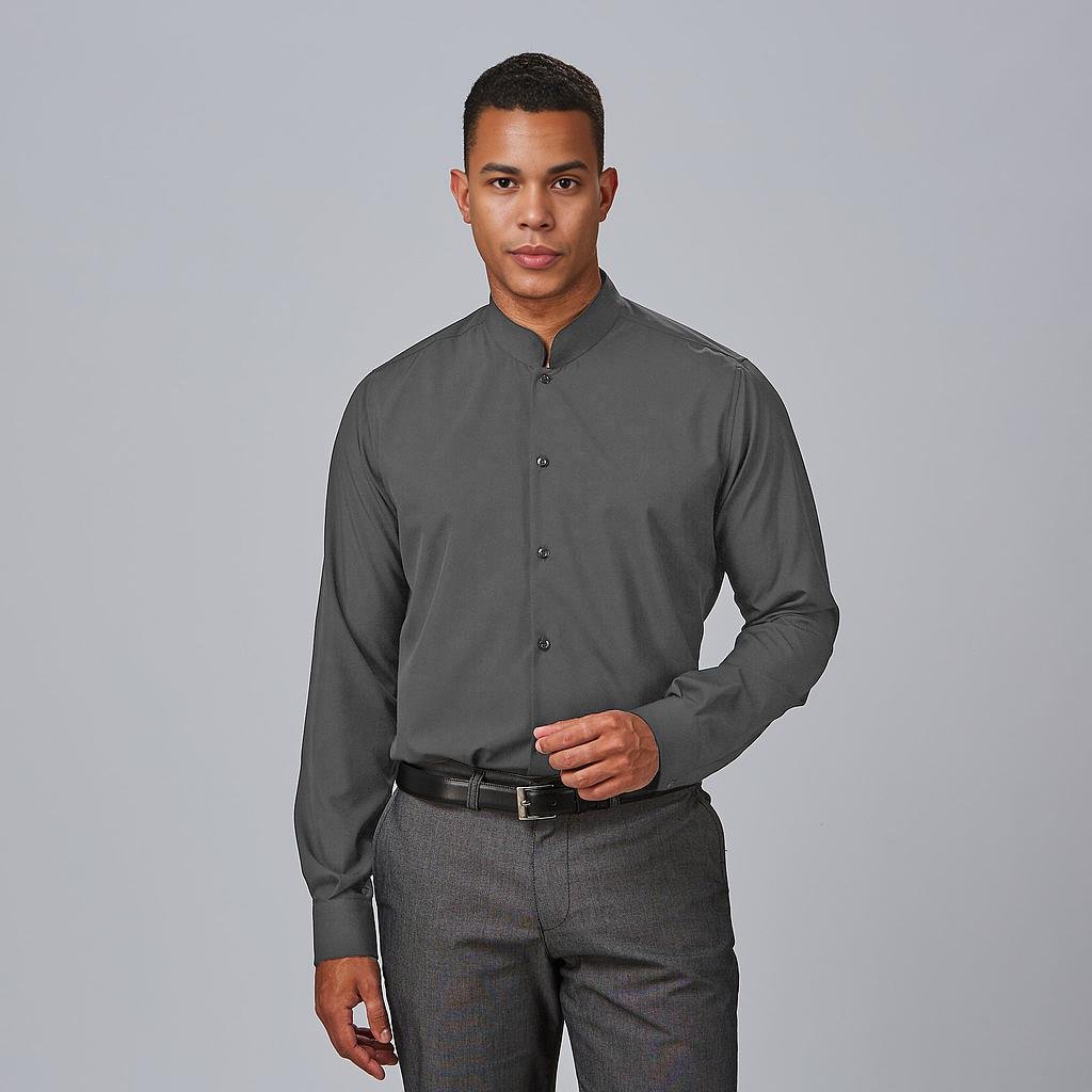 Fabricada en COOL DRY (95% poliéster, 5% elastano), esta camisa ofrece una combinación única de comodidad y resistencia, ideal para jornadas largas y exigentes. Su cuello mao y manga larga con abertura y puño añaden un toque de estilo contemporáneo, mientras que las pinzas en la espalda y el canesú garantizan un ajuste impecable.