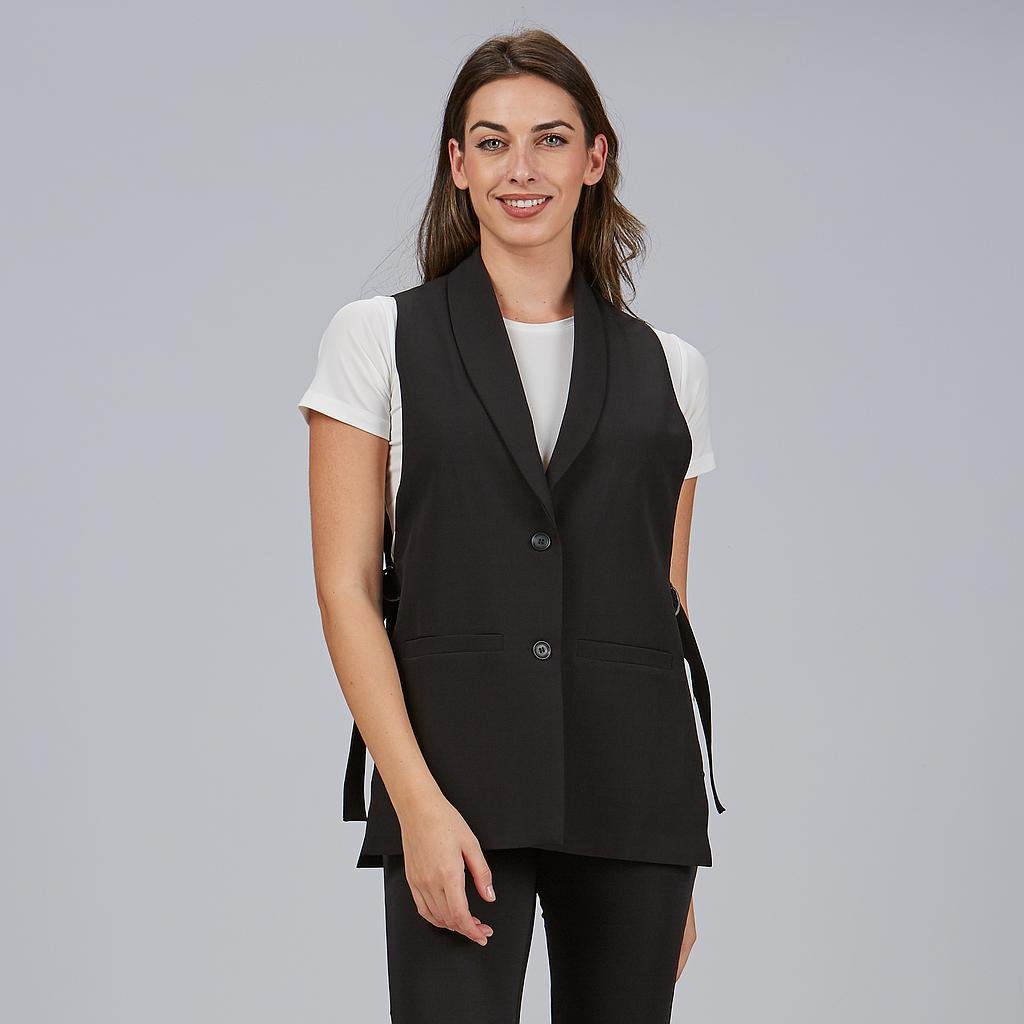 Descubre el chaleco de mujer con cuello smoking Morera, una elección elegante y versátil para destacar en el sector de la belleza. Su cuello tipo smoking agrega un toque de sofisticación a tu atuendo laboral, proyectando una imagen profesional y cuidada.El chaleco se cierra con dos botones, fusionando funcionalidad con diseño distintivo. Fácil de abrochar y desabrochar, facilita tu rutina diaria con un toque de distinción. Las aberturas en los costados, cerradas con cinta y hebilla metálica, son detalles únicos que aportan moda y personalidad a tu imagen, marcando la diferencia en tu estilo laboral.Con dos bolsillos en el delantero, este chaleco te brinda espacio adicional para herramientas o pequeños objetos esenciales, asegurando conveniencia en tu día de trabajo. Forrado para proporcionar comodidad y suavidad al contacto con la piel, te permite sentirte cómoda durante toda la jornada.Fabricado en PLANA GRUESA 88%PES 12%EA – 220gr/m², este chaleco ofrece durabilidad y resistencia, manteniendo su apariencia impecable a lo largo del tiempo. Colores disponibles:Negro (C/001)Pantalón a juego: 700049.