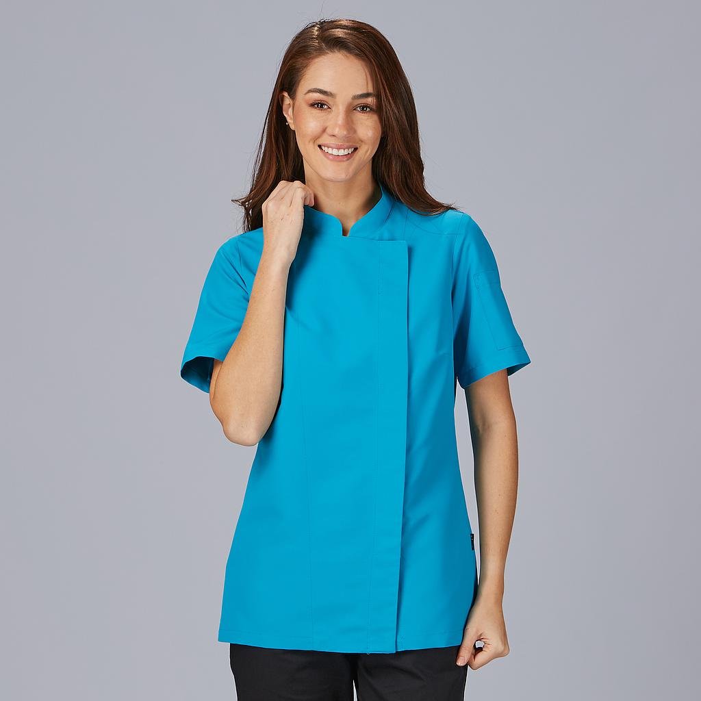 Esta chaqueta está confeccionada para combinar estilo y funcionalidad. Presenta una manga corta y un cuello mao, lo que le da un aspecto elegante. Además, cuenta con un bolsillo en la manga izquierda y un cierre cruzado mediante botones de presión ocultos. Su diseño semi ajustado, con pinzas en el pecho y costadillos en la espalda, asegura un ajuste perfecto y cómodo.La chaqueta está fabricada en MICROFIBRA de 100% Poliéster, un tejido que ofrece comodidad y durabilidad excepcionales. Es altamente transpirable, resistente a las salpicaduras de lejía diluida en agua y se puede lavar a 90º. Además, se seca rápidamente y no requiere planchado, lo que facilita su mantenimiento. También es repelente al cabello y pelo de mascotas, manteniendo tu aspecto profesional en todo momento.La chaqueta incorpora tejido técnico AEROSILVER en la espalda, que no solo es cómodo, sino que también contribuye a mantener un ambiente higiénico, vital en entornos de cocina.La chaqueta de cocina de mujer PAZ está disponible en versión de manga larga (referencia 948500) y para hombres (referencia 944200). Esta chaqueta es perfecta para uniformes de cocineras y chefs en la hostelería, la restauración y cualquier lugar de cocina. También es una opción excelente para el personal de comercio.La chaquetilla de cocina PAZ es el ejemplo perfecto de la combinación entre estilo, comodidad y durabilidad que necesitas en tu entorno de trabajo.