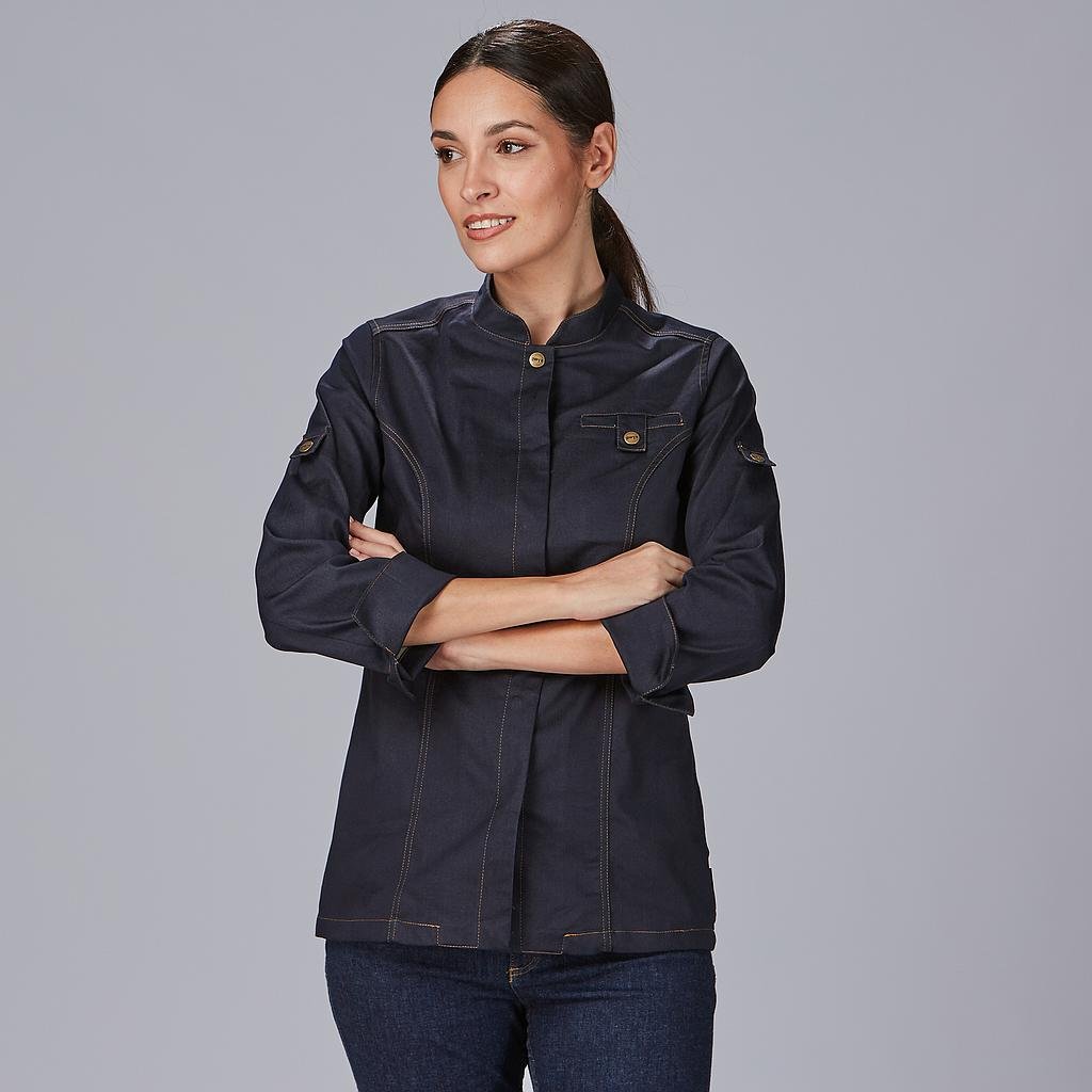 La chaqueta unisex VALERA presenta un diseño de alta costura con manga larga tipo roll up con corchete y un cierre central mediante botones de presión ocultos, con el primero de ellos visible. El cuello tirilla agrega un toque de elegancia, mientras que los puños vueltos proporcionan versatilidad.Confeccionada en TEJANO ELÁSTICO SIN LAVAR, esta chaqueta es el epítome de la comodidad. El tejido elástico se adapta a tus movimientos, lo que es esencial para profesionales que pasan largas horas en su lugar de trabajo.El bolsillo en el pecho izquierdo proporciona un espacio práctico para guardar pequeños objetos, y los botones de presión ocultos garantizan un cierre seguro y sin complicaciones.El modelo ajustado de la chaqueta, combinado con costadillos en el delantero y la espalda, resalta la figura de la mujer, ofreciendo un aspecto profesional y elegante.Esta chaquetilla de cocina no solo es cómoda, sino también resistente, lo que garantiza que esta chaqueta soportará el uso diario en entornos de cocina y hostelería.Ideal para uniformes de camareras, cocineras y chefs en la hostelería, restaurantes y en cualquier entorno de cocina en general.Si trabajas en equipo con colegas o necesitas una opción unisex, esta chaqueta está disponible en un modelo para hombre (referencia 946600).La chaqueta de cocina unisex VALERA es la elección perfecta para quienes buscan elegancia, comodidad y calidad en una prenda de ropa de hostelería. Opta por la chaquetilla de cocina unisex VALERA y experimenta la diferencia que una prenda de alta calidad puede hacer en tu profesión.