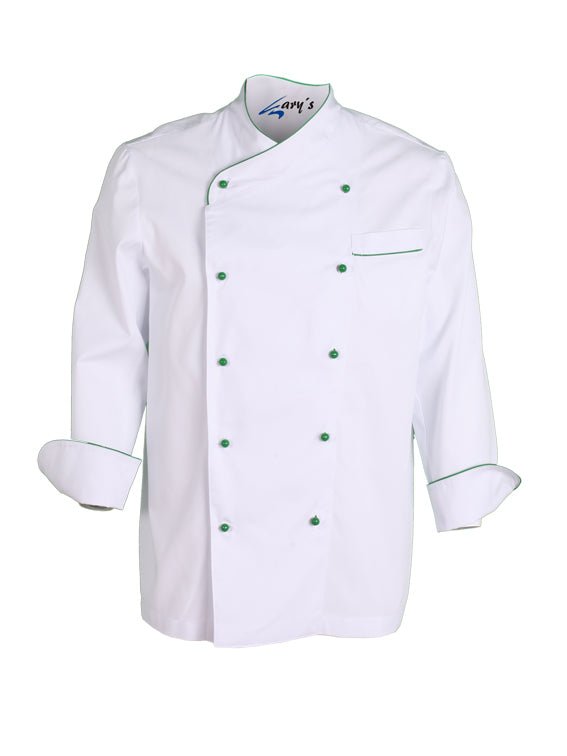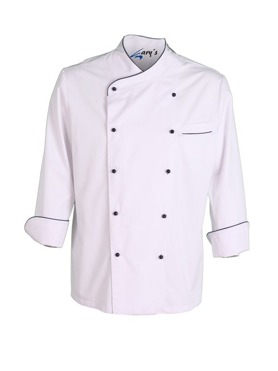 Su diseño holgado y los costadillos en la espalda permiten un ajuste cómodo y facilitan la libertad de movimiento, lo que resulta especialmente importante en un entorno de cocina activo.La chaqueta está confeccionada en resistente sarga de color blanco, conocida por su durabilidad y facilidad de cuidado.Para un toque de estilo y funcionalidad, la chaqueta presenta detalles en color negro, incluyendo los vivos del cuello, bolsillo, delantero, puños y botones. Además, cuenta con AEROSILVER en la zona de las sisas para mantener una sensación de frescura y control de la humedad.La chaqueta se suministra con los botones de chupete necesarios, lo que significa que los usuarios pueden usarla de inmediato sin tener que buscar accesorios adicionales.La chaqueta de cocina unisex NÁPOLES es una elección versátil y funcional para profesionales de la hostelería que desean una prenda de alta calidad que cumpla con las exigencias del trabajo en la cocina. Su diseño unisex, junto con los botones de chupete, añade un toque de estilo y profesionalismo, mientras que el bolsillo en el pecho y la confección en sarga resistente hacen que esta chaqueta sea una elección práctica y duradera para el entorno de cocina. Los detalles en negro y AEROSILVER en las sisas agregan comodidad y frescura durante largas jornadas laborales. ¡No espere más para vestirse con estilo y comodidad en la cocina!
