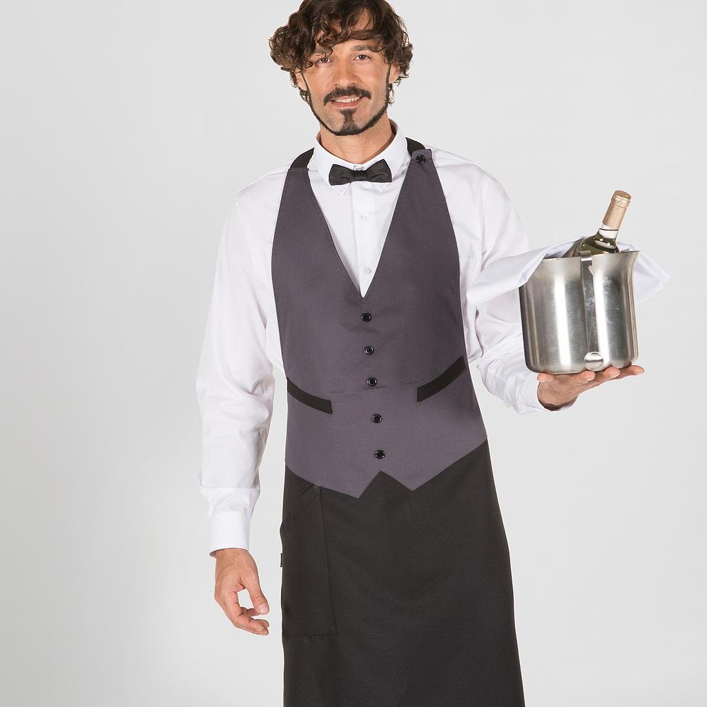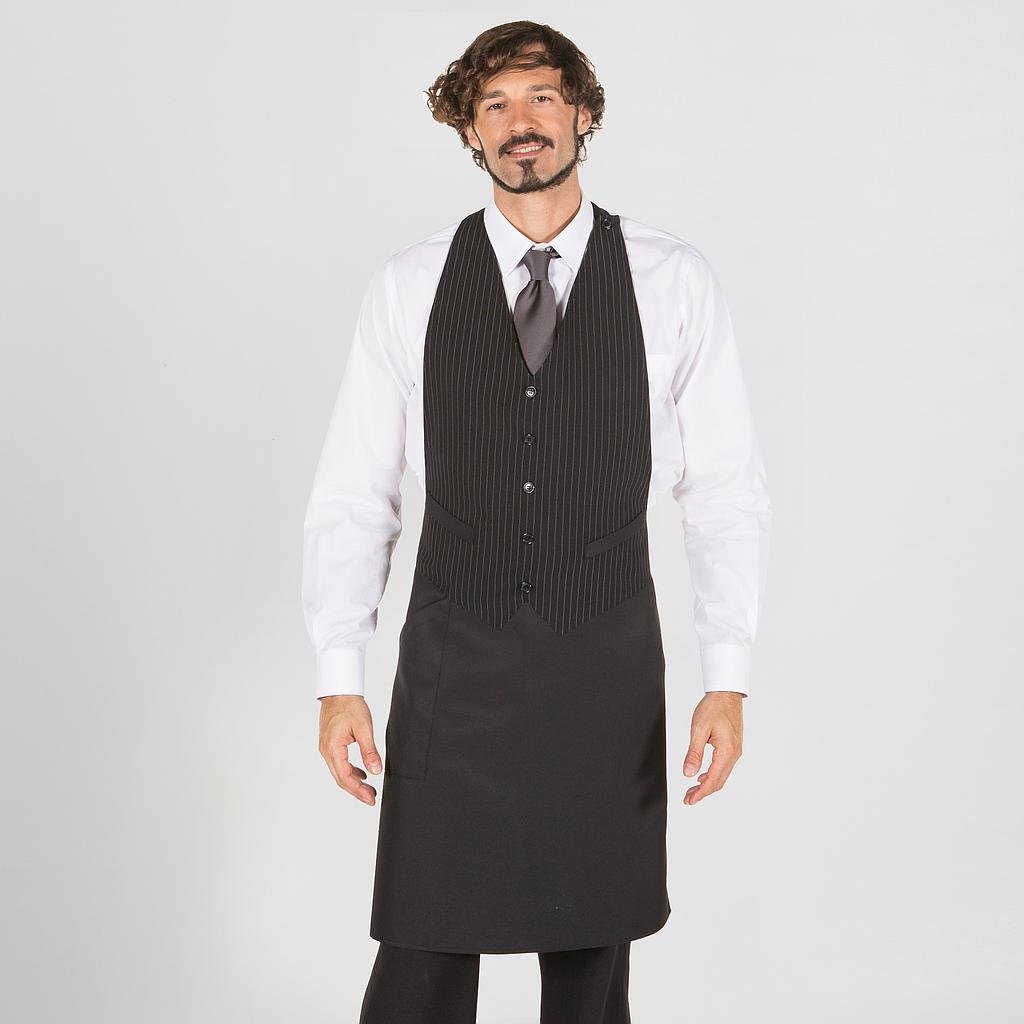 Funcionalidad combinadas en nuestro Delantal con Chaleco de 77×74 centímetros, una pieza esencial para profesionales de la hostelería y el comercio que buscan destacar con estilo. Este delantal largo con peto, meticulosamente confeccionado en 100% poliéster, ofrece dos opciones de diseño: liso o raya diplomática, para adaptarse a tus preferencias y al ambiente de trabajo.El diseño único imita un chaleco, añadiendo un toque sofisticado al uniforme de camareros, chefs y personal de comercio. Además, el bolsillo delantero derecho proporciona un espacio práctico para guardar pequeños utensilios esenciales durante tu jornada laboral.Los botones cosidos imitan el cierre de un chaleco, brindando un aspecto profesional y pulido. Disponible en opciones versátiles de diseño, este mandil con chaleco es la elección ideal para aquellos que buscan un uniforme distintivo y de alta calidad en bares, restaurantes y comercios en general. ¡Eleva tu imagen profesional con este delantal que une estilo y funcionalidad de manera excepcional!