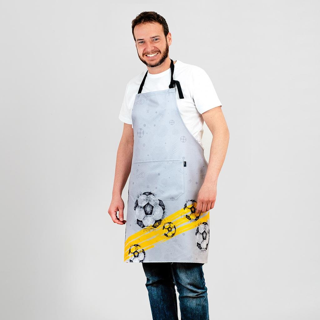 La fusión perfecta de estilo y funcionalidad con nuestro DELANTAL CON PETO FUTBOL, diseñado para destacar en el mundo de la hostelería y la cocina. Este delantal presenta un diseño innovador, con peto y bolsillo central, que incorpora la pasión por el fútbol en cada detalle.El DELANTAL CON PETO FUTBOL va más allá de la estética, ofreciendo comodidad ajustable con una cinta del cuello equipada con hebilla reguladora. Este detalle permite adaptar el delantal a tus preferencias, brindando un ajuste personalizado para tu comodidad mientras trabajas.El modelo sublimado con un diseño original aporta un toque único y vibrante a tu vestimenta laboral. Ideal como regalo para profesionales de la hostelería, restauración, y cocina, así como para uso en el hogar o el comercio, este mandil se destaca por su versatilidad y estilo distintivo.Con medidas de 80×69 cm, el DELANTAL CON PETO FUTBOL proporciona una cobertura óptima, asegurando protección y estilo en cada tarea. Descubre una nueva dimensión de elegancia y funcionalidad con este delantal que refleja tu pasión por el fútbol, perfecto para quienes buscan marcar la diferencia en su entorno laboral.
