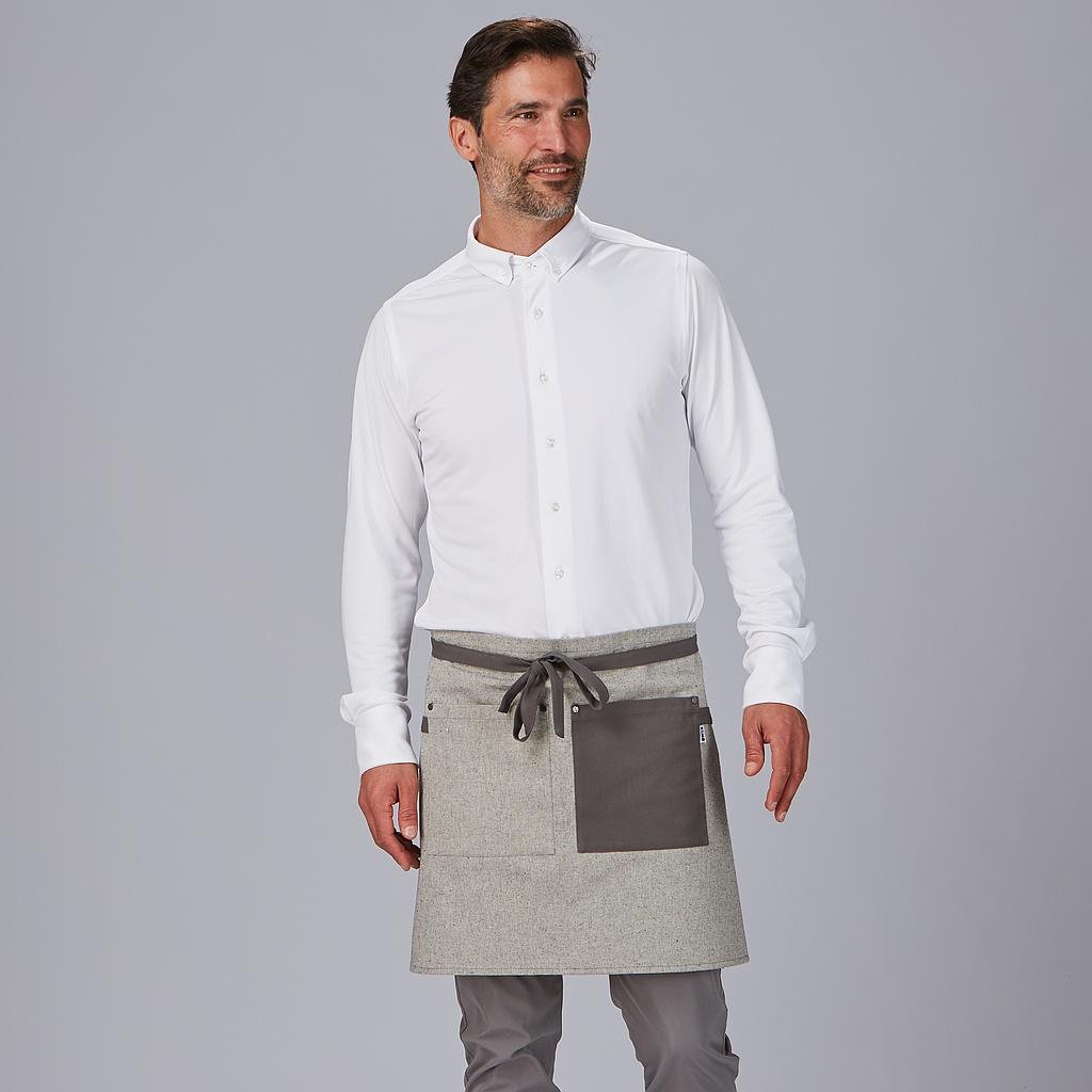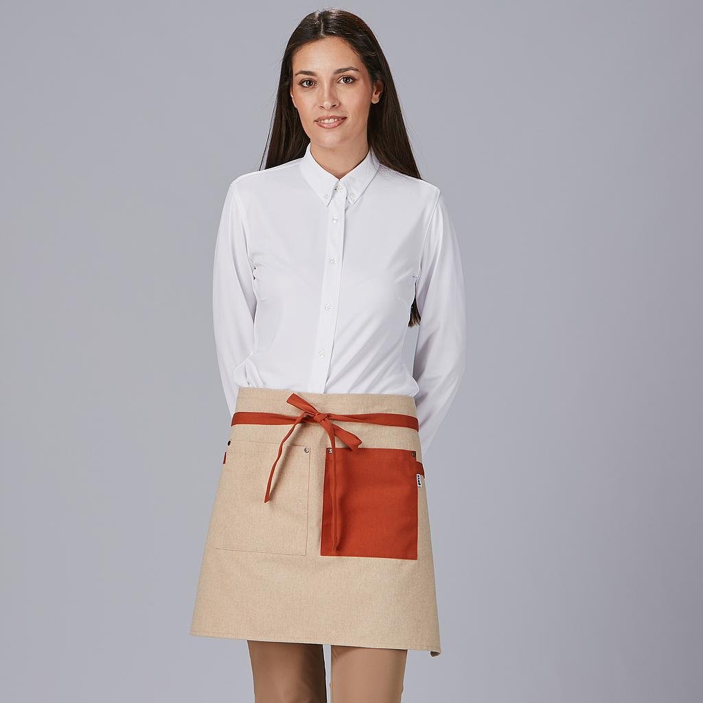 El Delantal Corto con Bolsillos y Cintas Combinadas es la opción ideal para profesionales que buscan comodidad, estilo y practicidad en su jornada laboral. Disponible en elegantes tonos gris y camel, este diseño versátil es perfecto para entornos de hostelería, restauración y comercios.Fabricado en loneta resistente (90% CO, 10% PES – 200 gr/m²), este mandil ofrece durabilidad y confort, manteniendo un aspecto impecable durante todo el día. Su formato corto de 45 cm permite una mayor movilidad, ideal para quienes buscan libertad de movimiento sin renunciar a la funcionalidad.Su ajuste mediante una cinta proporciona un entallado cómodo y seguro, mientras que sus dos amplios bolsillos de parche en la parte delantera permiten llevar siempre a mano utensilios, blocs de notas u otros elementos esenciales para el trabajo.* Diseño moderno y versátil, disponible en gris y camel.* Fabricado en loneta resistente, ideal para el uso diario.* Tamaño corto de 45 cm, que facilita el movimiento.* Cinta ajustable, para un ajuste personalizado.* Dos bolsillos delanteros, para máxima funcionalidad.* Ideal para hostelería, comercios y profesionales que buscan comodidad y estilo.