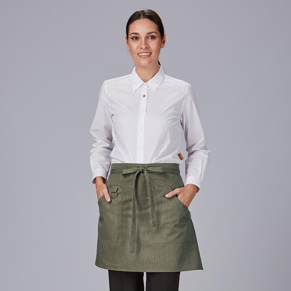 Aporta un toque profesional y ecológico a tu uniforme con el Delantal Corto en Sarga Reciclada, una prenda ideal para hostelería, cocina y comercios. Fabricado en sarga reciclada (65% poliéster – 35% algodón, 195 gr/m²), este mandil ofrece una excelente durabilidad y comodidad, con un diseño moderno y sostenible.Cuenta con dos bolsillos asimétricos en el delantero, perfectos para llevar utensilios o accesorios de trabajo, y se ajusta cómodamente mediante tiras laterales.Disponible en azulina y burdeos, colores elegantes que realzan cualquier uniforme profesional.* Material reciclado y resistente, ideal para un uso prolongado.* Dos bolsillos asimétricos en el delantero para mayor funcionalidad.* Ajuste mediante tiras para adaptarse a diferentes tallas.* Medidas de 50×74 cm, proporcionando una cobertura óptima.* Disponible en azulina y burdeos, colores modernos y versátiles.