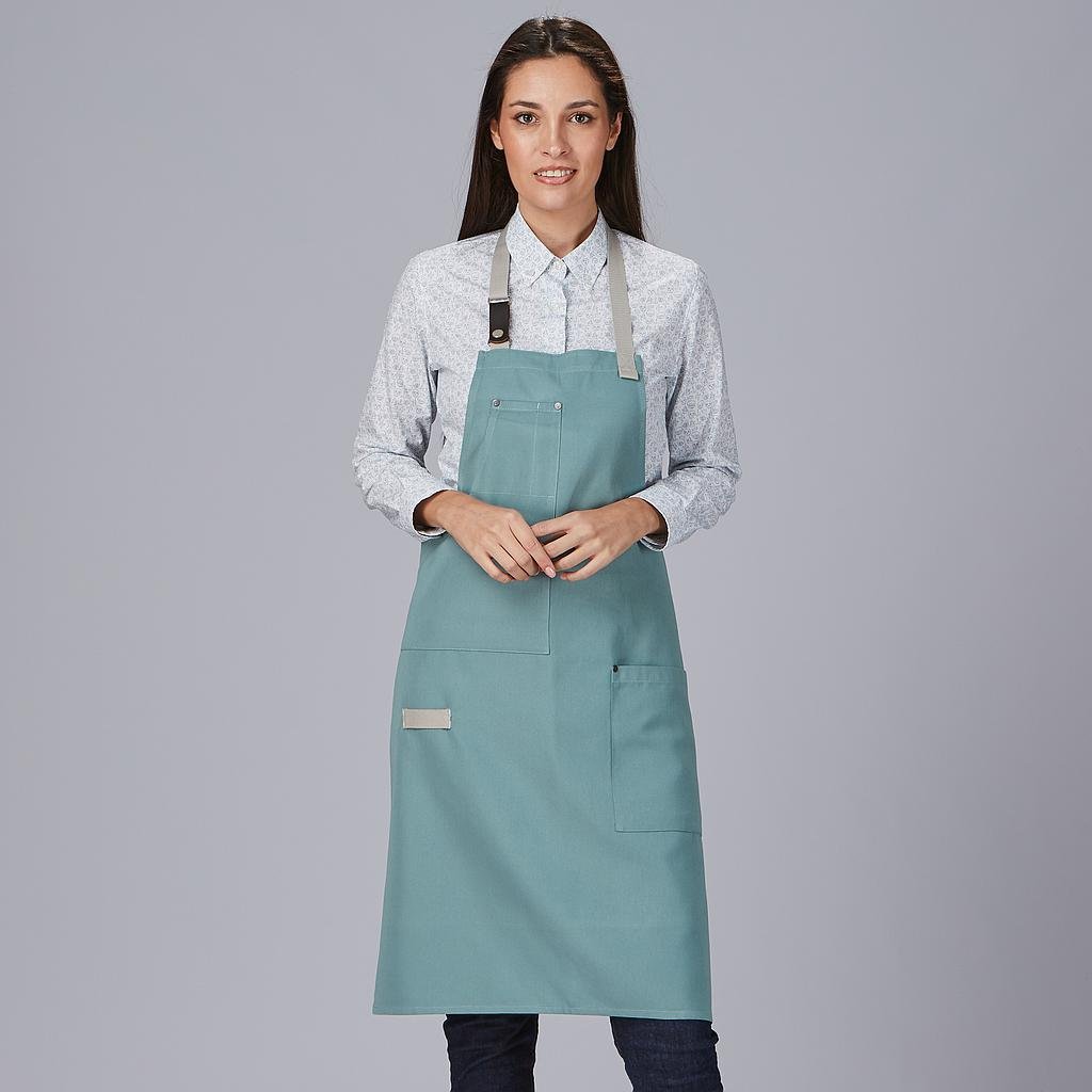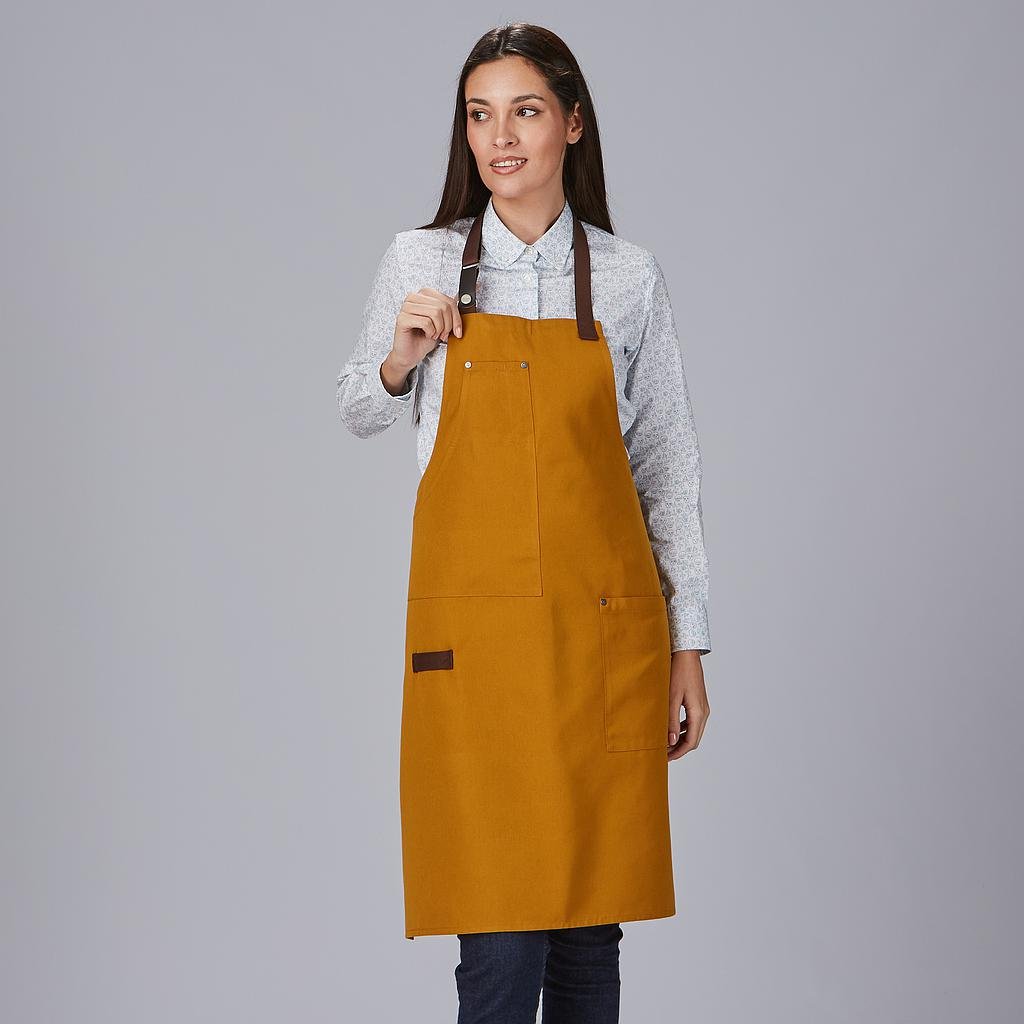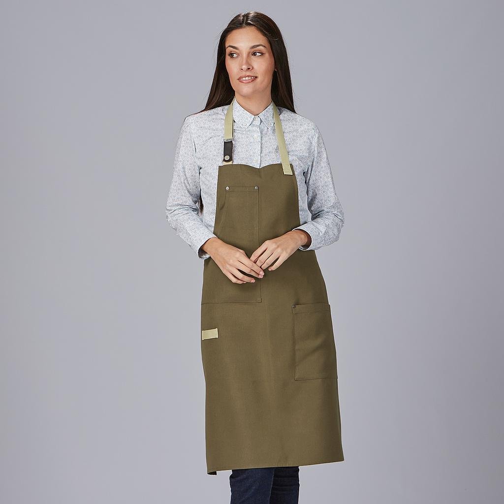 El Delantal Peto Contrastes de Espiga es la combinación perfecta entre estilo, resistencia y funcionalidad. Diseñado para profesionales de la hostelería, restauración y comercio, este delantal aporta un toque moderno y sofisticado sin renunciar a la comodidad y practicidad.Confeccionado en tejido Panamá 100% PC (210 gr/m²), ofrece gran resistencia al uso diario, fácil mantenimiento y durabilidad. Su diseño ajustable mediante cintas de espiga y herrajes metálicos garantiza un ajuste seguro y cómodo para cualquier usuario.Además, cuenta con varios bolsillos estratégicos: 1 bolsillo en el pecho derecho, 1 bolsillo delantero en el lado izquierdo y una trabilla de espiga en el delantero derecho, proporcionando espacio adicional para guardar utensilios y herramientas de trabajo.Con un largo aproximado de 88 cm, este mandil ofrece una cobertura óptima y un ajuste ergonómico, perfecto para mantener la ropa protegida sin restringir la movilidad.* Diseño profesional y moderno, ideal para hostelería y comercio.* Material resistente y fácil de mantener, pensado para un uso intensivo.* Ajuste cómodo y seguro, gracias a las cintas de espiga y herrajes metálicos.* Alta funcionalidad, con bolsillos y trabilla para mayor comodidad.* Largo de 88 cm, asegurando una excelente cobertura y protección.* Disponible en colores versátiles y elegantes: Negro, Verde Oliva, Verde Musgo, Verde Agua, Caldera y Mostaza.