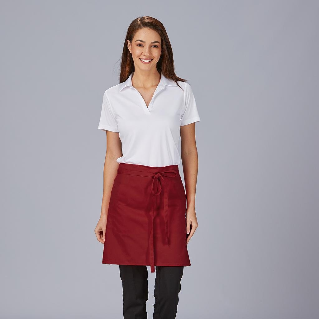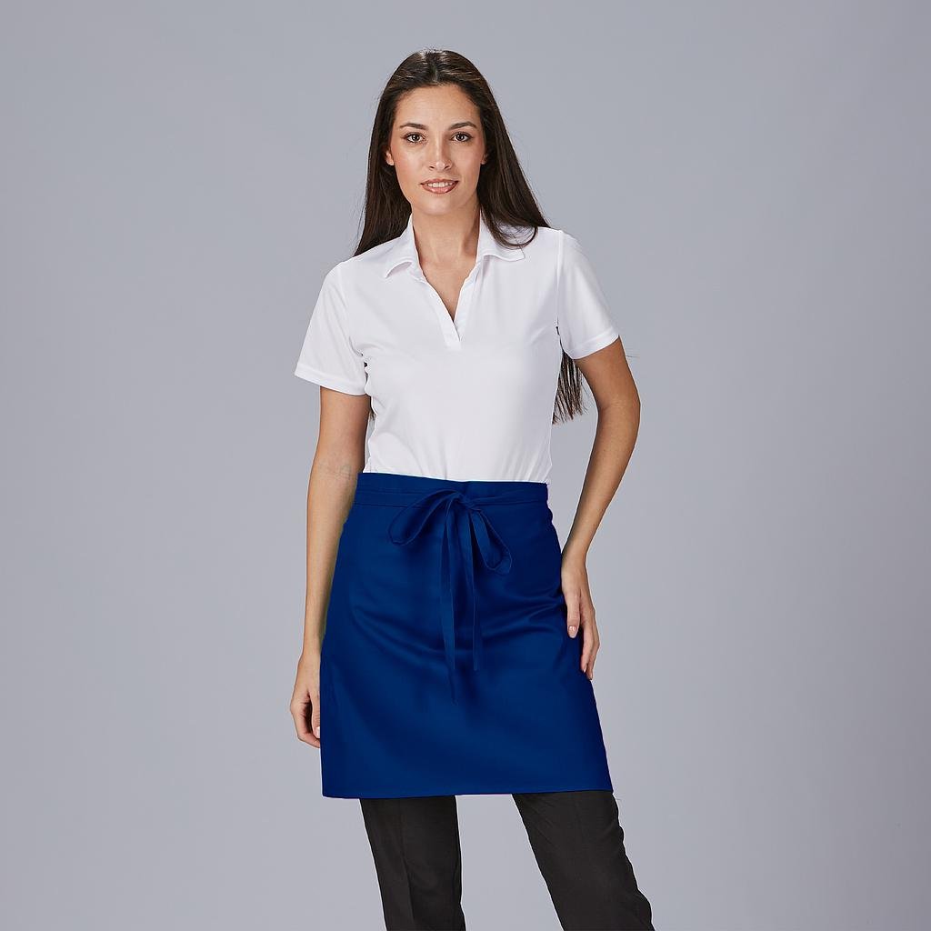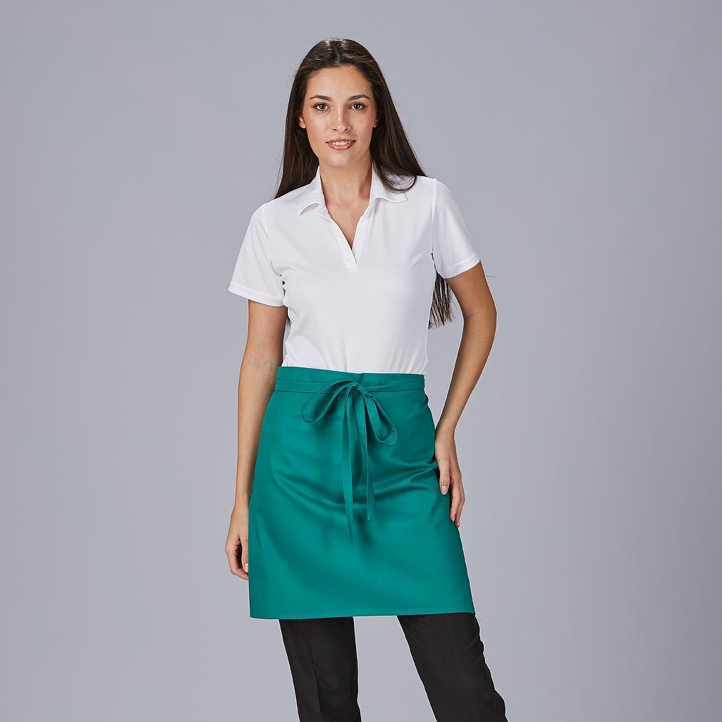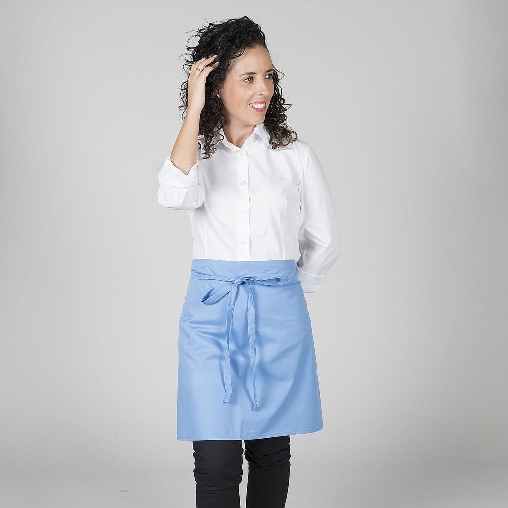 Delantal corto sin bolsillos, confeccionado en sarga de colores, con cintas para anudar del mismo tejido. Este mandil es ideal para uniforme de hostelería, restauración y cocina o comercio de alimentación.