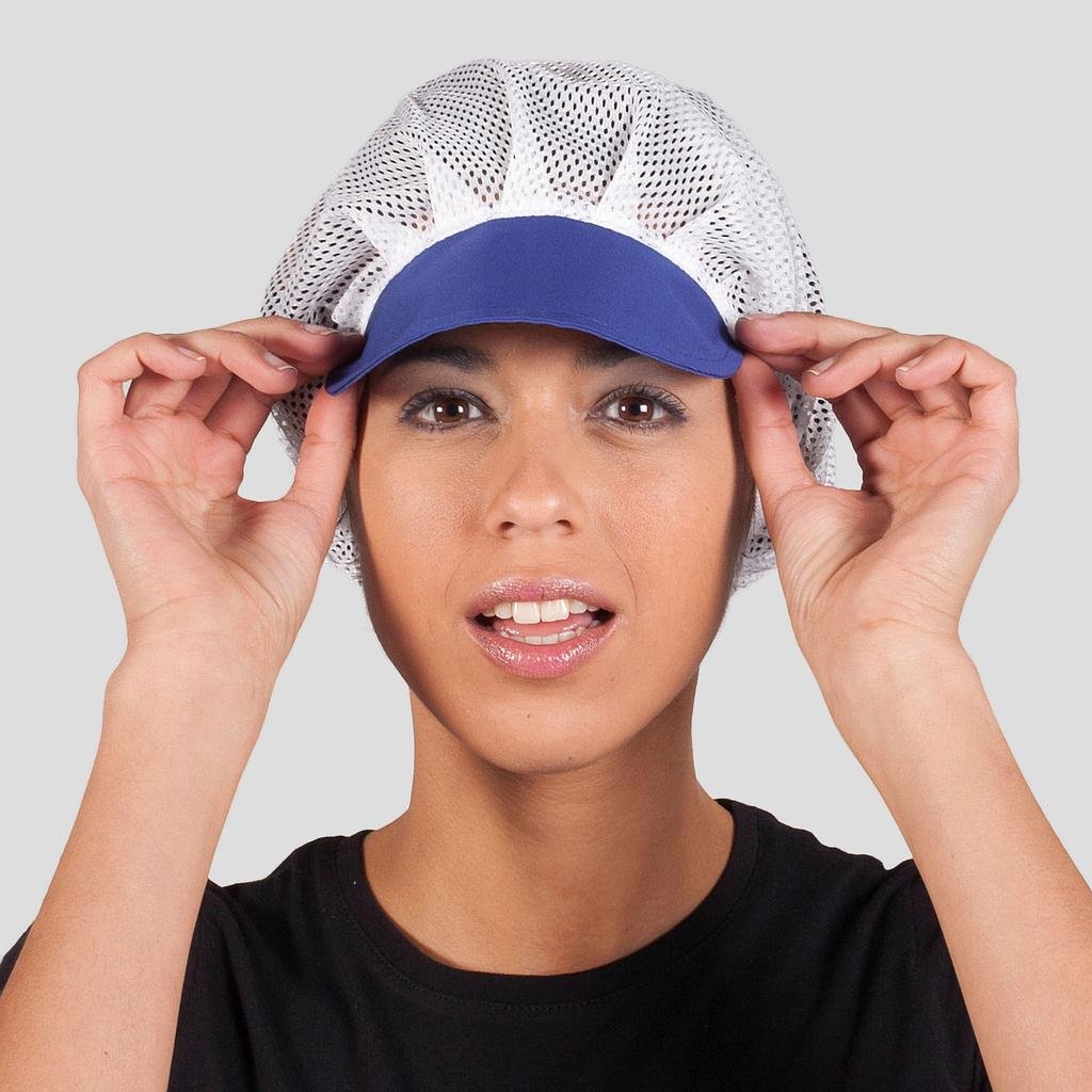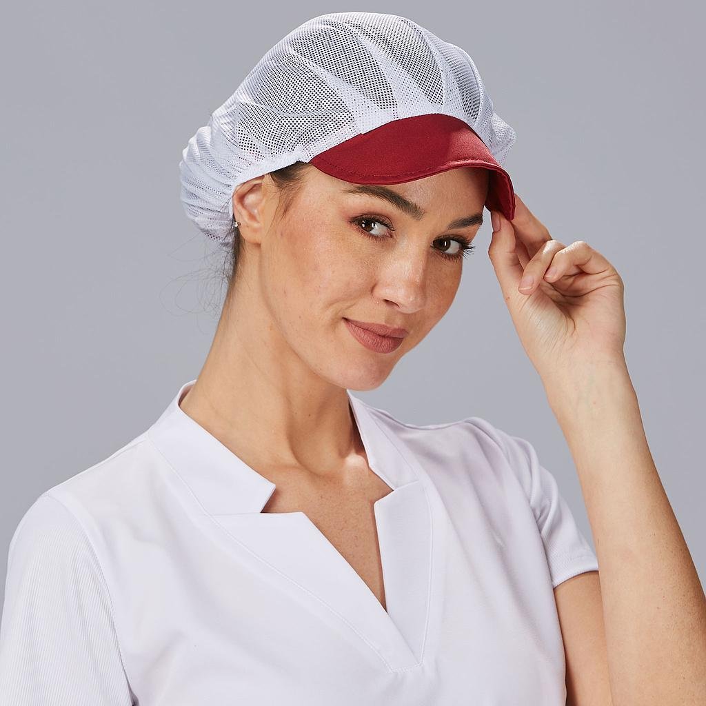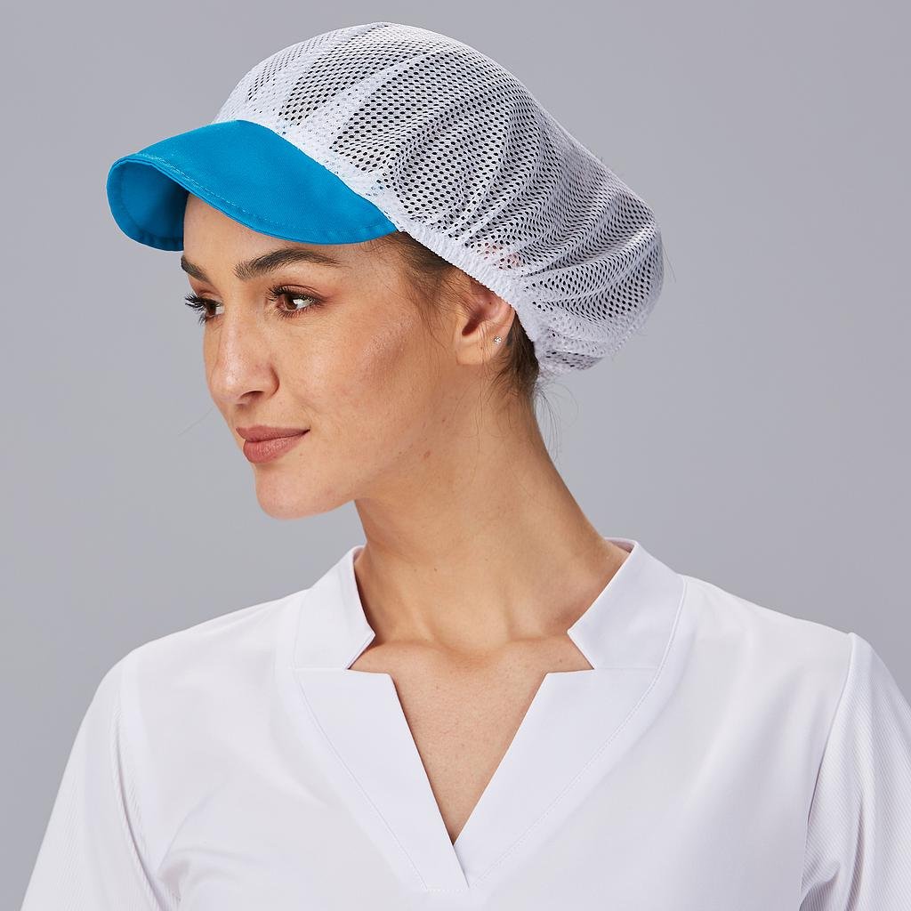 La parte superior del recogepelo está confeccionada con una rejilla que ofrece una excelente ventilación, manteniendo la cabeza fresca y cómoda durante largas jornadas de trabajo.La redecilla presenta una visera semi rígida disponible en 17 vibrantes colores, lo que permite a los usuarios personalizar su look y destacar en su entorno laboral.El elástico en la parte trasera garantiza un ajuste cómodo y seguro, permitiendo a las profesionales recoger su cabello de forma práctica.La posibilidad de elegir entre una amplia gama de colores de visera permite a cada profesional expresar su estilo y personalidad, mientras mantiene una apariencia profesional.La rejilla transpirable y el elástico en la parte trasera brindan comodidad durante toda la jornada laboral, incluso en entornos exigentes.Ideal para uniformes de hostelería y restauración, alimentación, almacén, cocina, limpieza o comercio.