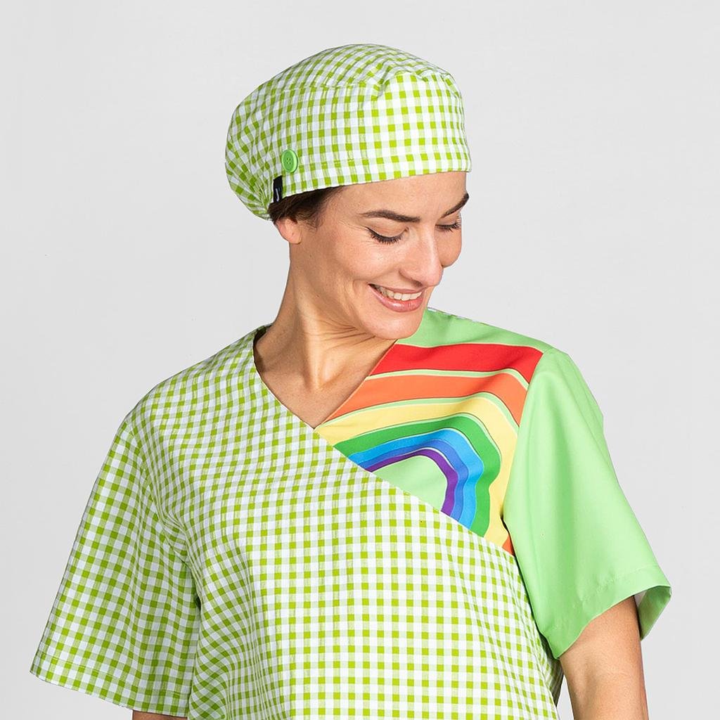 Este gorro está confeccionado en BAMBULA ANTIBACTARIANA, un tejido que ha sido tratado con acabado biocida. Esto evita la proliferación de bacterias, lo que lo convierte en una opción higiénica y segura para su uso en entornos profesionales.Además de sus propiedades antibacterianas, la Bambula Antibacteriano cuenta con un tratamiento hidrófugo. Esto significa que es resistente al agua, lo que lo hace aún más adecuado como una barrera protectora en entornos donde se requiere una mayor higiene.Está disponible en varios colores, incluyendo celeste, fucsia y pistacho. Esto permite a los profesionales elegir un color que se adapte a sus preferencias personales o a los estándares de uniformidad de su lugar de trabajo.Cuenta con una goma trasera que permite un ajuste cómodo y seguro en la cabeza. Además, presenta botones laterales que son útiles para sujetar las gomas de las mascarillas, lo que contribuye a mantener una apariencia profesional y ordenada.Además, es una prenda versátil y adecuado para una amplia gama de profesionales. Es ideal para enfermeros, doctores y otros trabajadores de la salud, así como para educadores y maestros en escuelas infantiles y guarderías. También es apropiado para el personal de limpieza, cocineros y trabajadores de comercios en general.