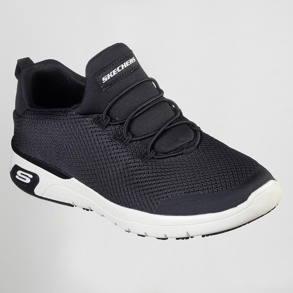 Dales a tus pies la comodidad que necesitan para superar la jornada laboral con Skechers Work Relaxed Fit: Marsing – Waiola SR. Modelo de trabajo antideslizante con parte superior de malla y tejido sintético, cordones elásticos decorativos, suela antideslizante y plantilla Skechers Air-Cooled Memory Foam con amortiguación.