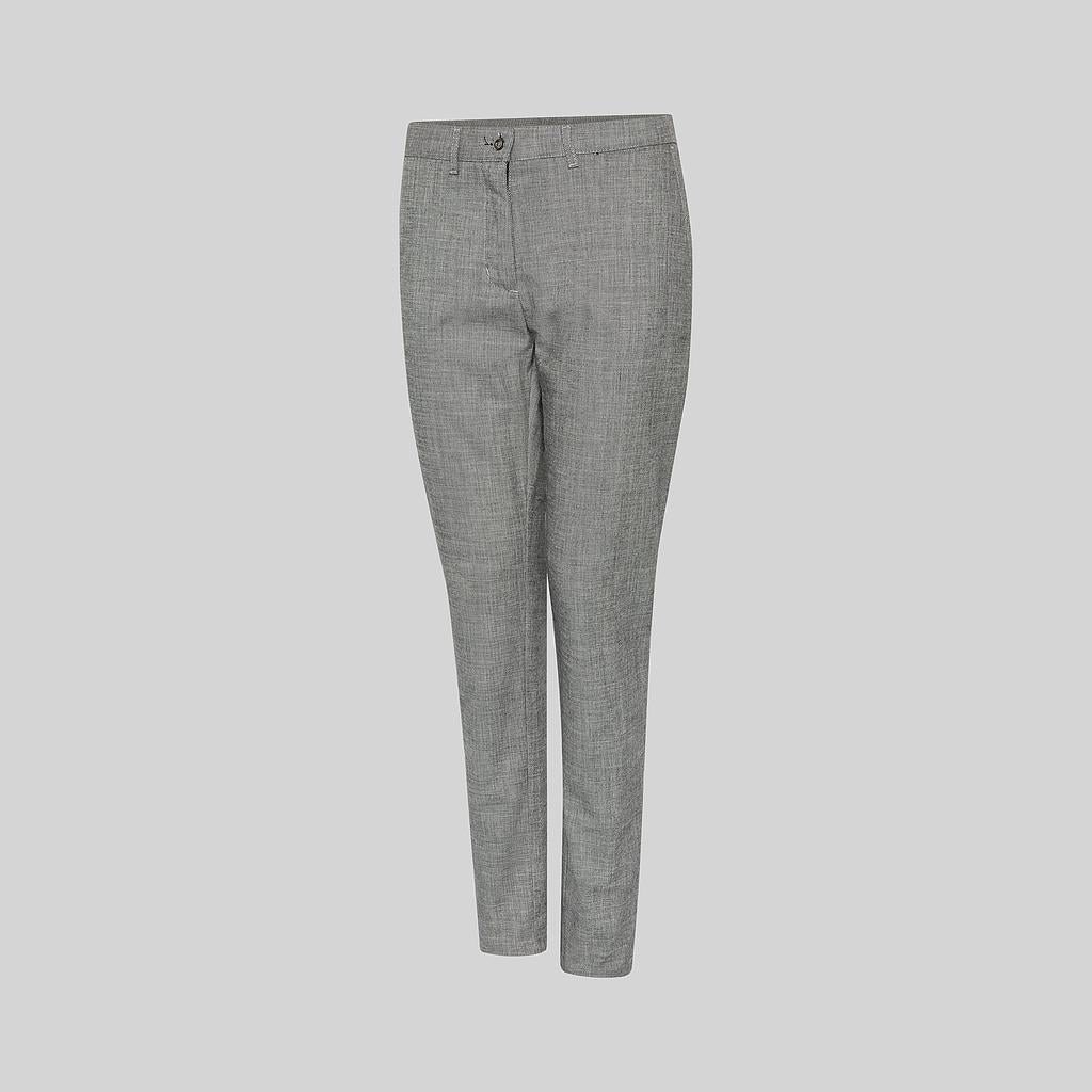 Este pantalón presenta un diseño ajustado que realza la figura y brinda un aspecto elegante y pulido. El talle medio proporciona un ajuste cómodo que se adapta a diversas formas corporales.Cuenta con dos bolsillos en la parte delantera y dos bolsillos traseros, lo que proporciona un espacio práctico para guardar objetos pequeños o herramientas de trabajo esenciales.Este modelo incluye trabillas en la cintura, lo que permite usar cinturones para un ajuste adicional y personalizado.El pantalón se cierra mediante botón y cremallera frontal, lo que garantiza un cierre seguro durante toda la jornada laboral.El tejido CHEVIOT utilizado en este pantalón está compuesto por un 97% de Algodón y un 3% de Elastano. Esta combinación proporciona un tejido elástico que garantiza comodidad y libertad de movimiento. Además, el aspecto desestructurado del hilado le aporta una elegancia informal.