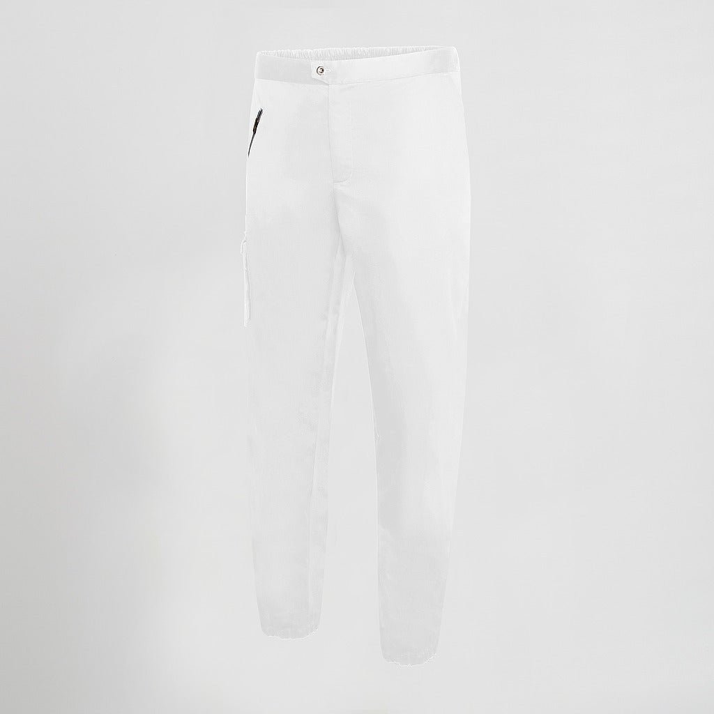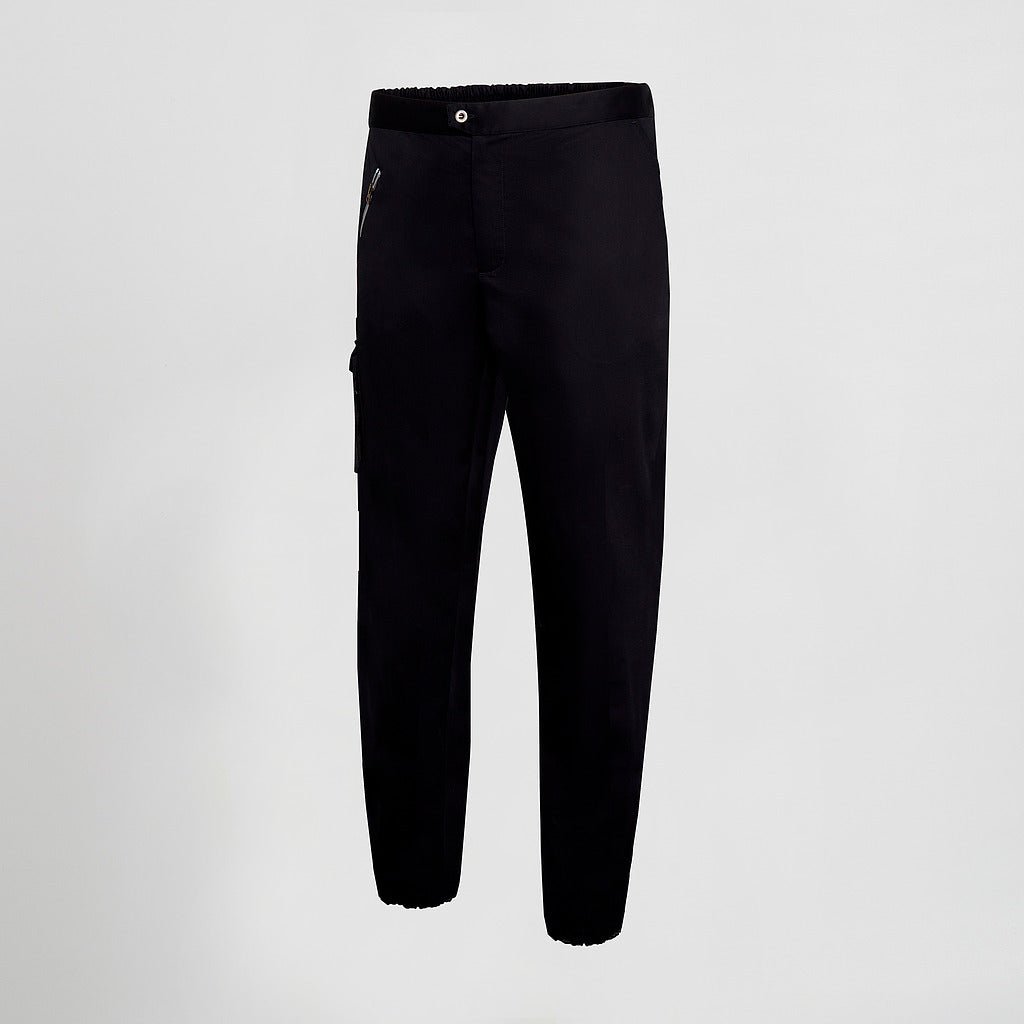 Este pantalón es la prenda ideal para quienes buscan un ajuste cómodo y un diseño moderno, perfecto para el sector sanitario y de hostelería.Confeccionado en SATÉN DE ALGODÓN 62%CO 35%PES 3%EA 180gr/m², garantiza suavidad, resistencia y libertad de movimiento durante toda la jornada laboral.Con cintura elástica con goma para un ajuste perfecto y tres bolsillos con cremalleras, que aportan un toque moderno y funcional. Presenta dos bolsillos en cadera y un bolsillo tipo sobre en el lado derecho. Con bajo con puño elástico, que aporta un look deportivo y actual y largo aproximado de 108 cm.Colores disponibles:Negro (C/001) | Blanco (C/101)Gracias a su tejido ligero y transpirable, este pantalón ofrece máxima comodidad y flexibilidad, ideal para entornos dinámicos donde el confort es clave.