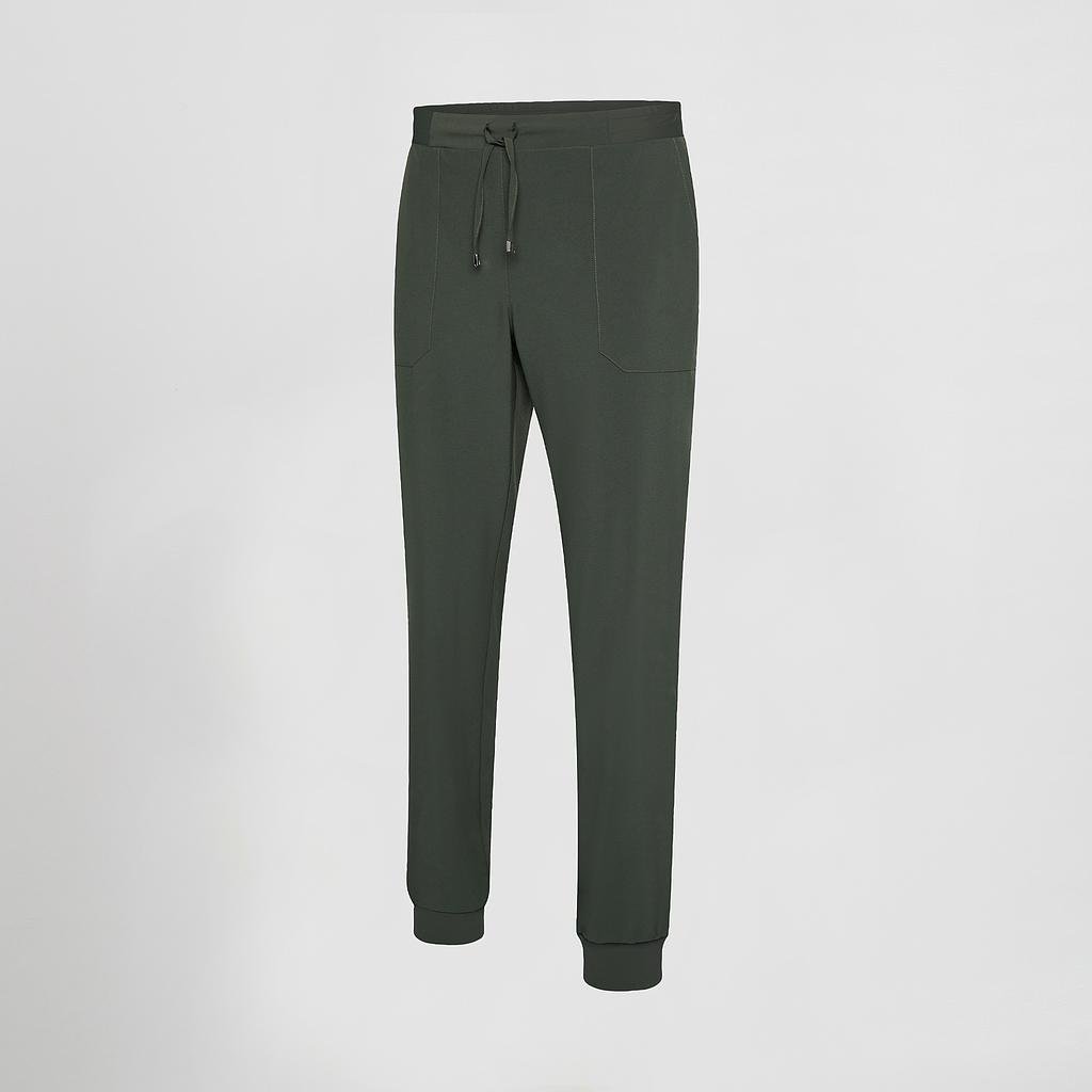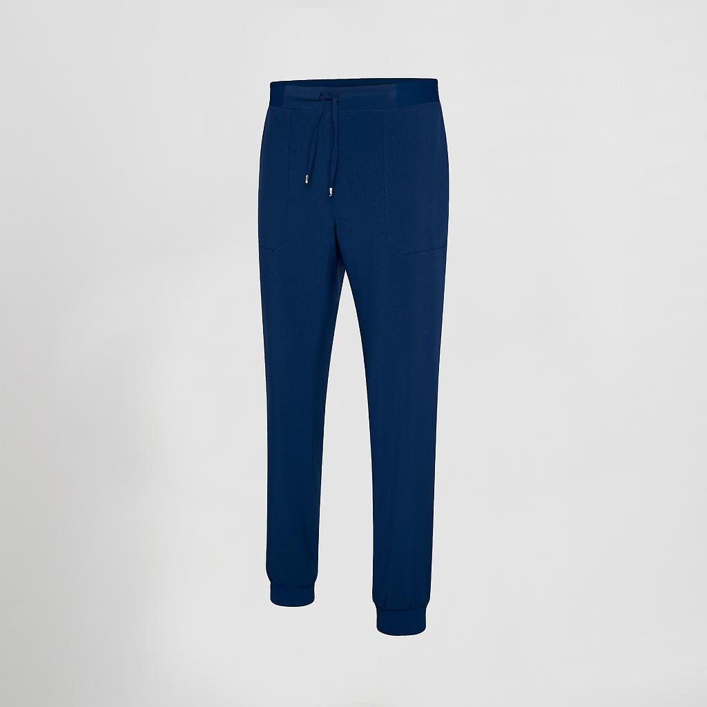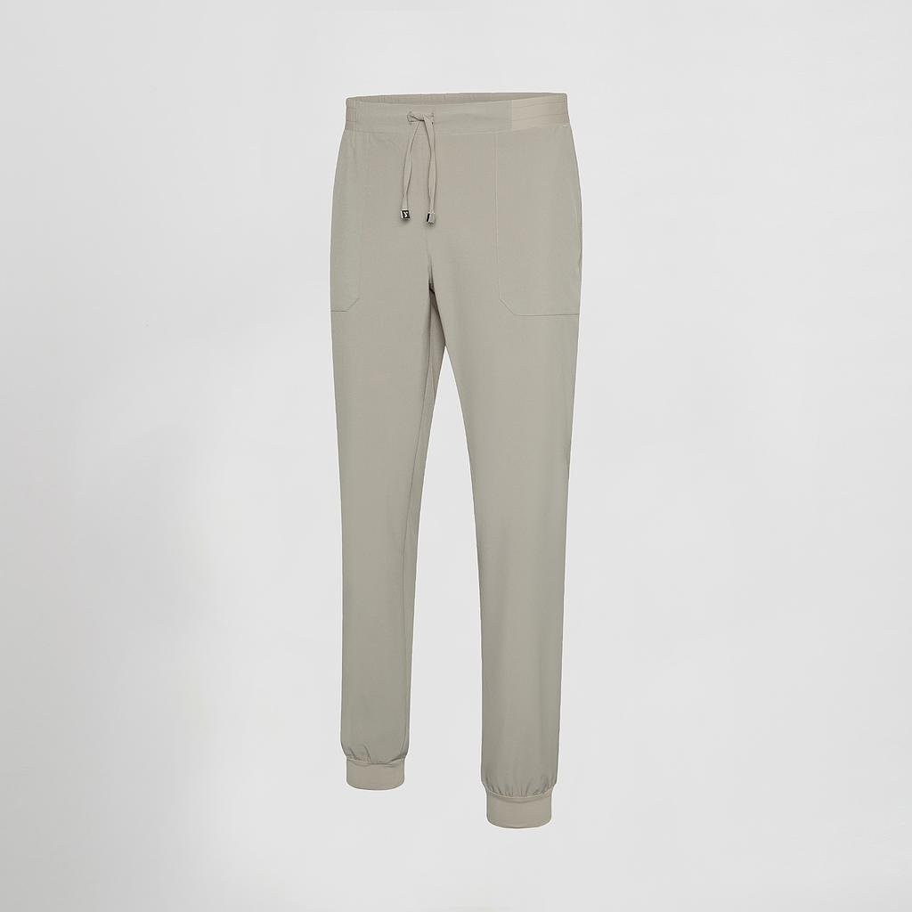 El pantalón, con un corte tipo jogger, presenta una combinación perfecta de moda y funcionalidad. Con media goma en la cintura trasera y cordón para ajustar, ofrece un ajuste personalizado, mientras que el bajo pitillo con puño agrega un toque moderno. Dos bolsillos franceses en la cadera y un bolsillo de parche trasero brindan practicidad sin sacrificar el estilo.