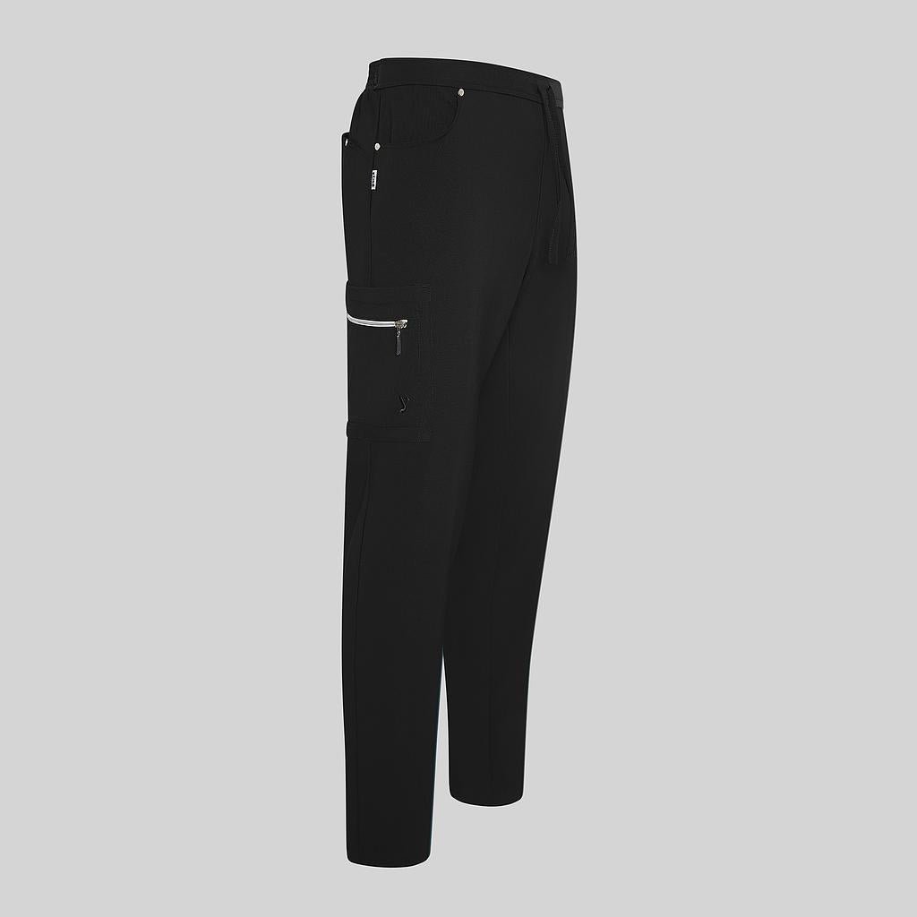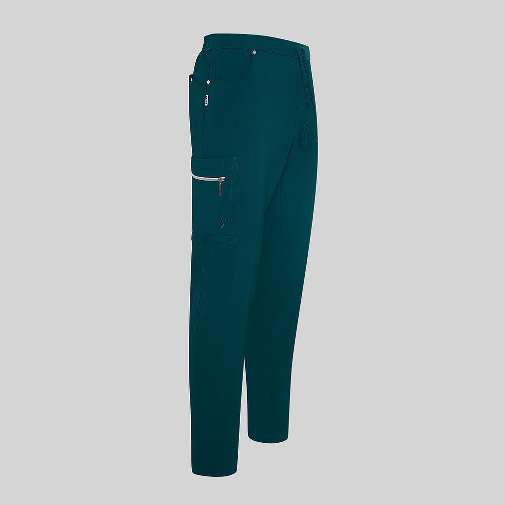 Innovación y rendimiento con este pantalón diseñado para satisfacer las exigencias de los profesionales de la salud y la industria sanitaria. Este pantalón de bajo pitillo ofrece un ajuste moderno y cómodo, perfecto para el movimiento constante en entornos dinámicos.Confeccionado en EXTRAFIBER 93%PES 7%EA 210gr/m², este tejido bielástico redefine la comodidad y la durabilidad. La media goma en la cintura trasera con cordón garantiza un ajuste personalizado, mientras que los dos bolsillos tipo tejano en cadera, el bolsillo invisible trasero y el bolsillo de parche con cremallera en la pernera derecha proporcionan un almacenamiento seguro y accesible para tus herramientas esenciales.La extraordinaria relación entre ligereza y resistencia del tejido garantiza una prenda duradera y resistente al desgarro, ideal para los rigores del entorno sanitario. Además, su capacidad bielástica permite una movilidad sin restricciones durante toda la jornada laboral.Este pantalón sanitario es mucho más que una prenda de trabajo: es una declaración de estilo y funcionalidad. Colores disponibles:Negro (C/001) | Gris marengo (C/139) | Verde petróleo (C/145)