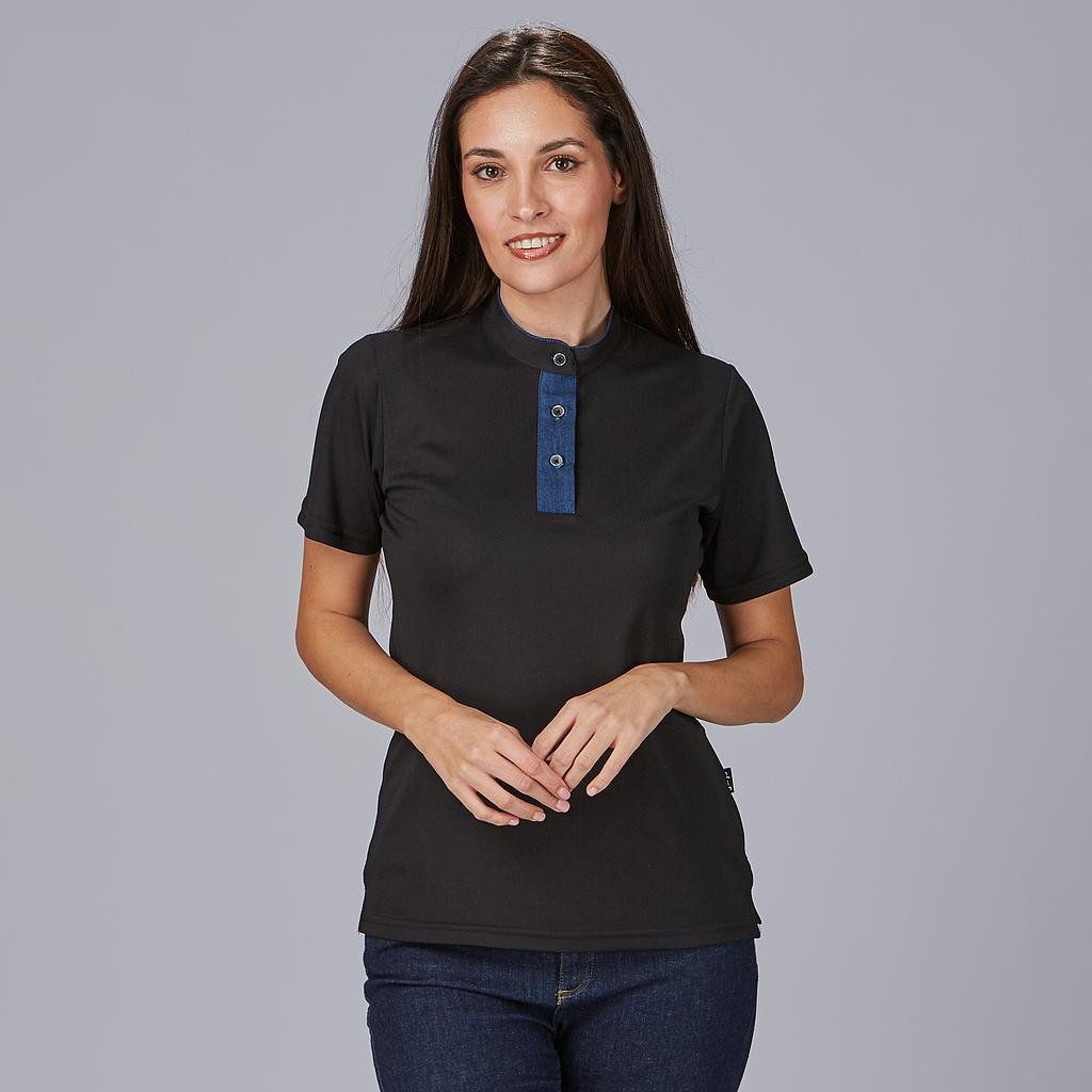 El cuello mao es un detalle distintivo que agrega un toque de estilo y originalidad a este polo. Proporciona un aspecto moderno y sofisticado que se adapta perfectamente a entornos de trabajo profesionales.La manga corta es perfecta para garantizar comodidad y movilidad, especialmente en trabajos que requieren atención al cliente y movimiento constante.Este polo está diseñado con un corte ajustado que se adapta a la figura femenina sin sacrificar la comodidad. Ofrece una apariencia moderna y elegante que es esencial en entornos de trabajo profesional.Confeccionado en tejido Piqué Coolmax de 100% poliéster, este polo es duradero y fácil de mantener. La tecnología Coolmax proporciona transpirabilidad y control de la humedad, manteniendo a tu personal fresco y seco durante toda su jornada laboral.Los detalles tejidos en el cuello, la espalda y la zona de los botones añaden un toque distintivo y moderno a este polo. Estos detalles tejanos le dan un aspecto único y atractivo.Este polo es ideal para camareras que trabajan en bares, restaurantes y cafeterías, así como para profesionales que se desempeñan en clínicas, spas, centros de estética y comercios en general.El polo mujer es la elección perfecta para crear un uniforme de hostelería de alta calidad que garantiza una imagen profesional para tu negocio. Combina estilo y funcionalidad para asegurar que tu personal se sienta y luzca impecable en cualquier entorno de trabajo. Asegura la satisfacción de tus empleadas y la impresión positiva de tus clientes con este polo de alta calidad.