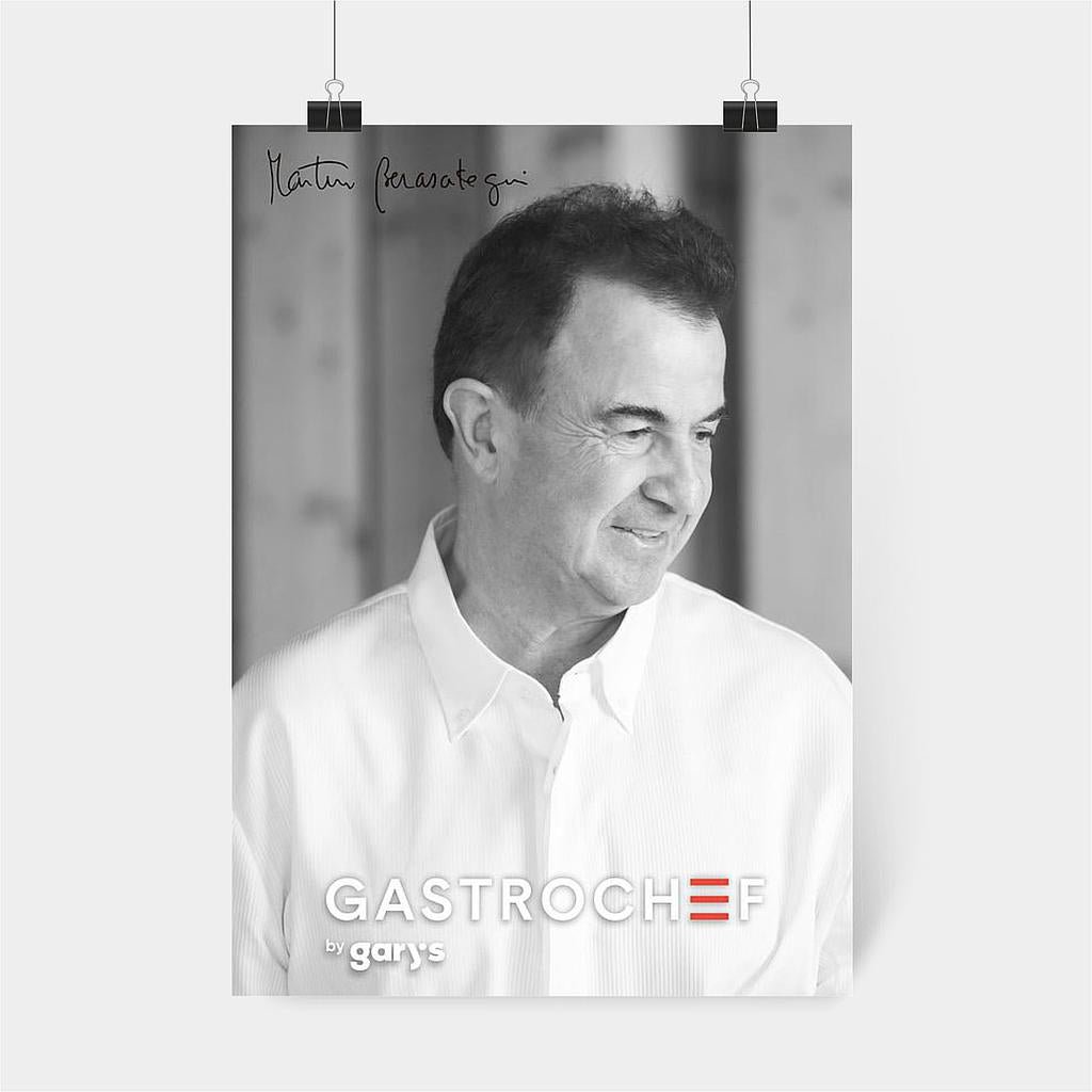 Poster tamaño A2 con imagen del chef Martín Berasategui para Gastrochef by Gary’s. Ideal para escaparates, zonas de exposición y tiendas.