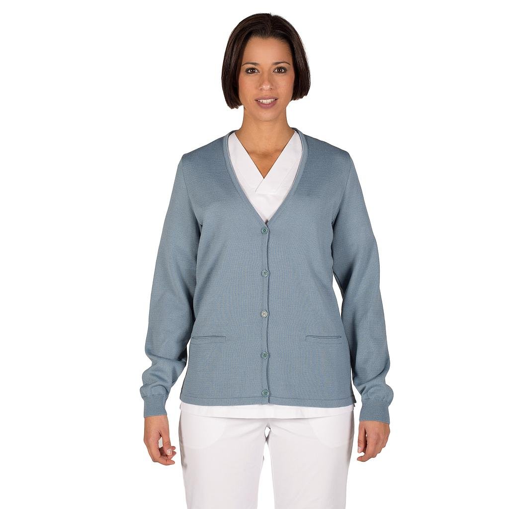 El diseño con botones y el cuello en pico de esta rebeca aportan un toque de sofisticación y versatilidad a su atuendo. Ya sea en un entorno de camarera, recepción, transporte, oficina, veterinaria, clínica, cuidado médico, limpieza, enfermería o comercio, esta prenda se adapta perfectamente a diversas profesiones y escenarios laborales.