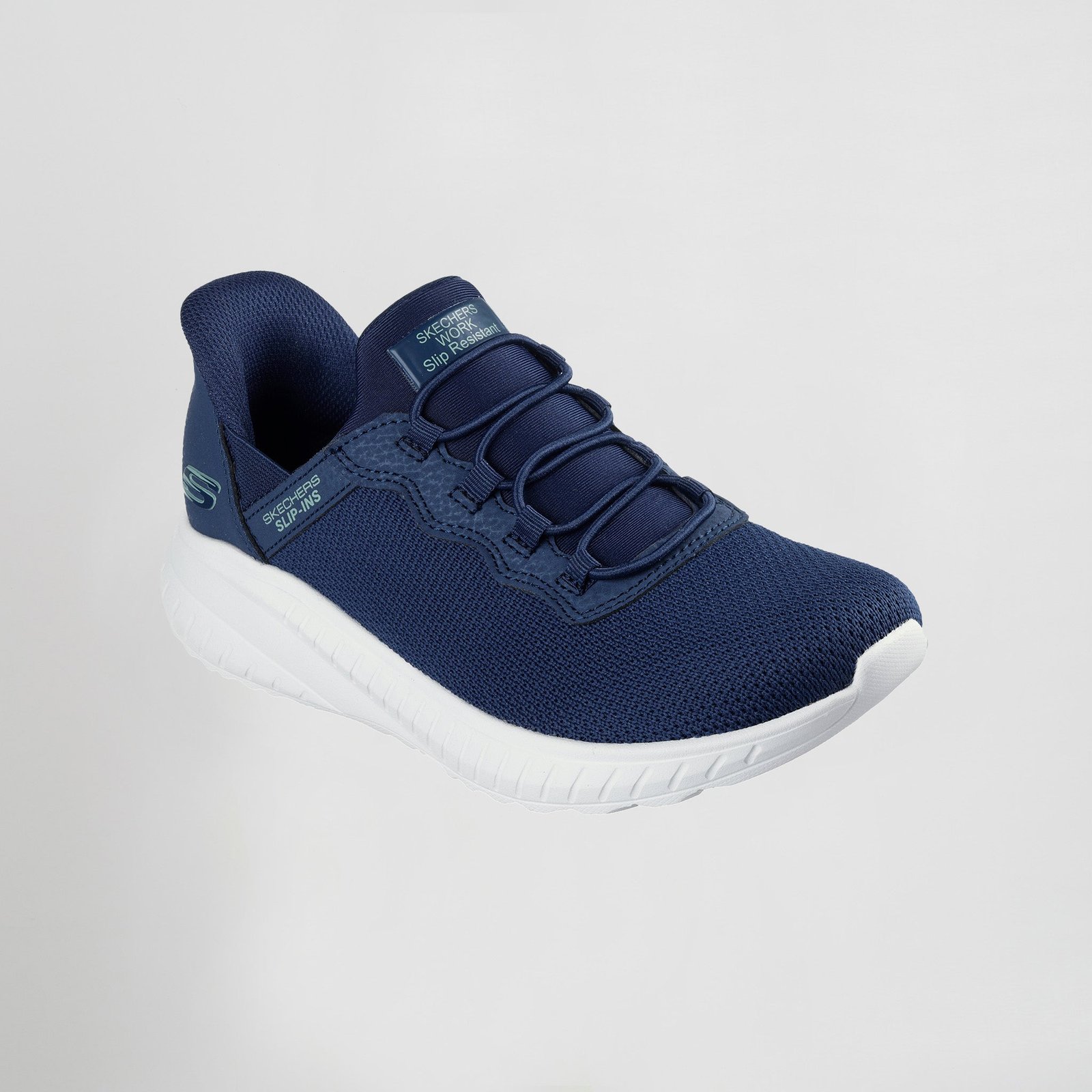 Plantilla acolchada Skechers Memory Foam™ para mayor comodidad. Relaxed Fit® para un ajuste cómodo y espacioso en la puntera y la parte delantera del pie. Diseño Stretch Knit® para una comodidad similar a la de un calcetín. Suela antideslizante (SR) para una mayor tracción en superficies húmedas, secas, aceitosas y grasientas. Parte superior de malla técnica con cordones elásticos en la parte delantera. No Tie Fit™: los cordones nunca se desatan. Entresuela contorneada que absorbe los impactos. Altura del tacón: 3,2 cm. Detalle del logotipo de Skechers®. Lavable a mano.