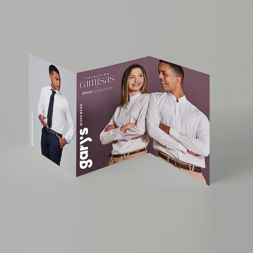 Tríptico de cartón publicitario colección camisas. Ideal para escaparates, zonas de exposición y tiendas.