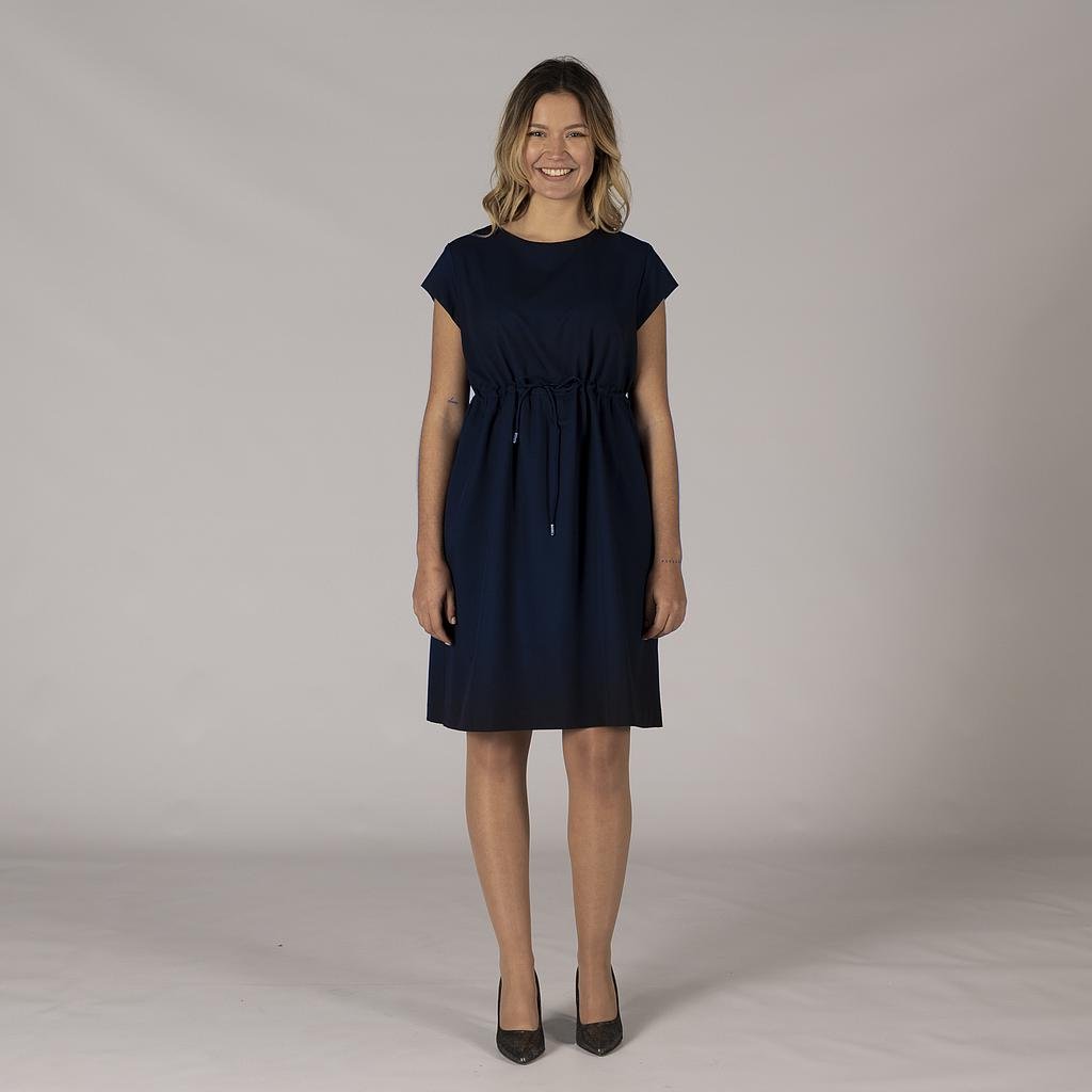 El Vestido con Cordón Trivial presenta un diseño de manga corta que equilibra la comodidad con la elegancia. Su cintura con cordón ajustable te permite adaptarlo a tu cuerpo para un ajuste perfecto y favorecedor. Además, cuenta con dos bolsillos laterales que son prácticos para llevar pequeños objetos esenciales.Este vestido está confeccionado en tejido TRIVIAL, una mezcla de 77% Poliéster, 20% Viscosa y 3% Elastano. Esta combinación de materiales proporciona varias ventajas, como un tacto suave, resistencia a las arrugas y facilidad de planchado. El tejido también ofrece una mayor libertad de movimiento, lo que es esencial para profesionales que están constantemente en movimiento.Aunque está diseñado con las necesidades de las profesionales de la hostelería en mente, este vestido también es adecuado para una variedad de entornos laborales, incluyendo recepción, transporte, oficina o comercio. Su diseño elegante lo convierte en una prenda versátil que puede adaptarse a diferentes situaciones laborales.El Vestido con Cordón Trivial está forrado con punto, lo que garantiza comodidad durante todo el día. Puedes llevarlo durante largas jornadas laborales sin sacrificar tu bienestar.